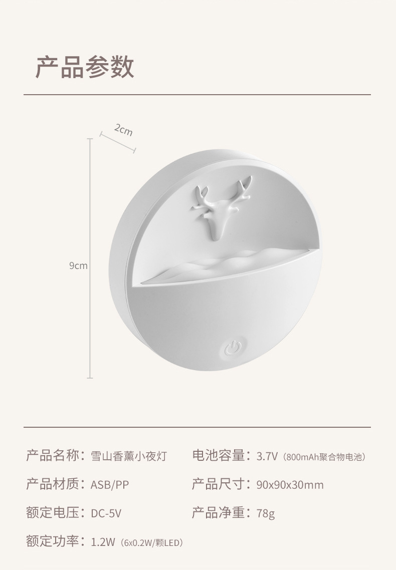 外贸专供SM66雪山香薰小夜灯智能触碰无极调光简约USB小夜灯