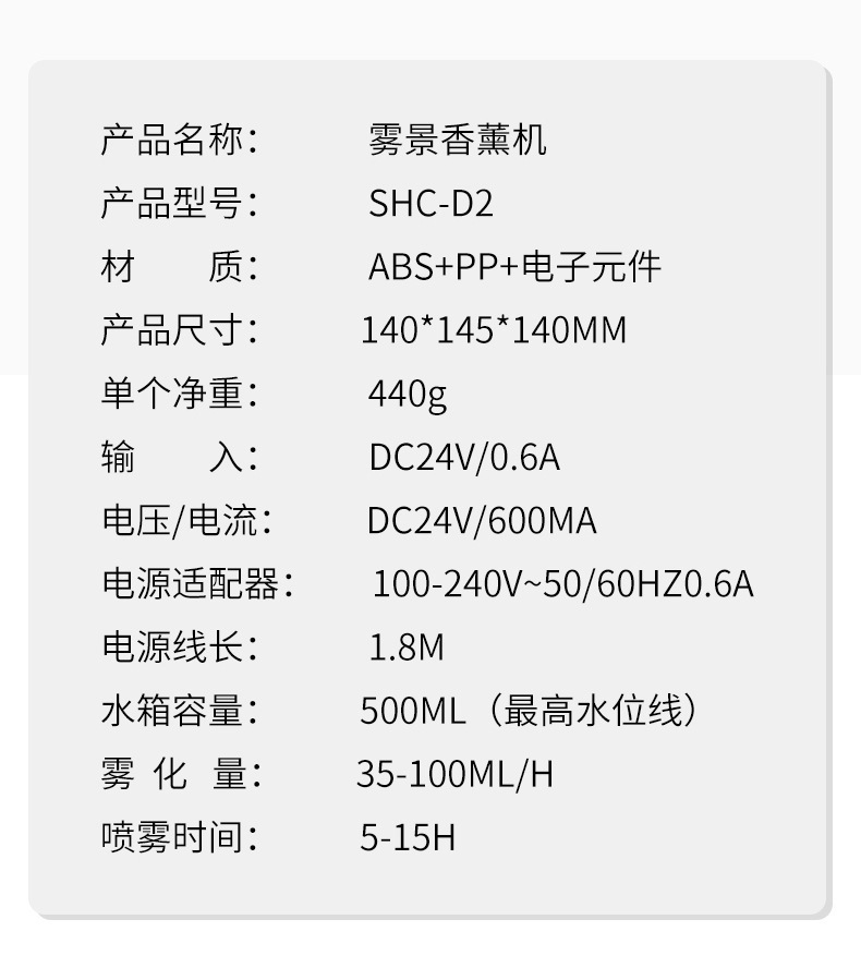 水箱容量 500ml(最高水位线)