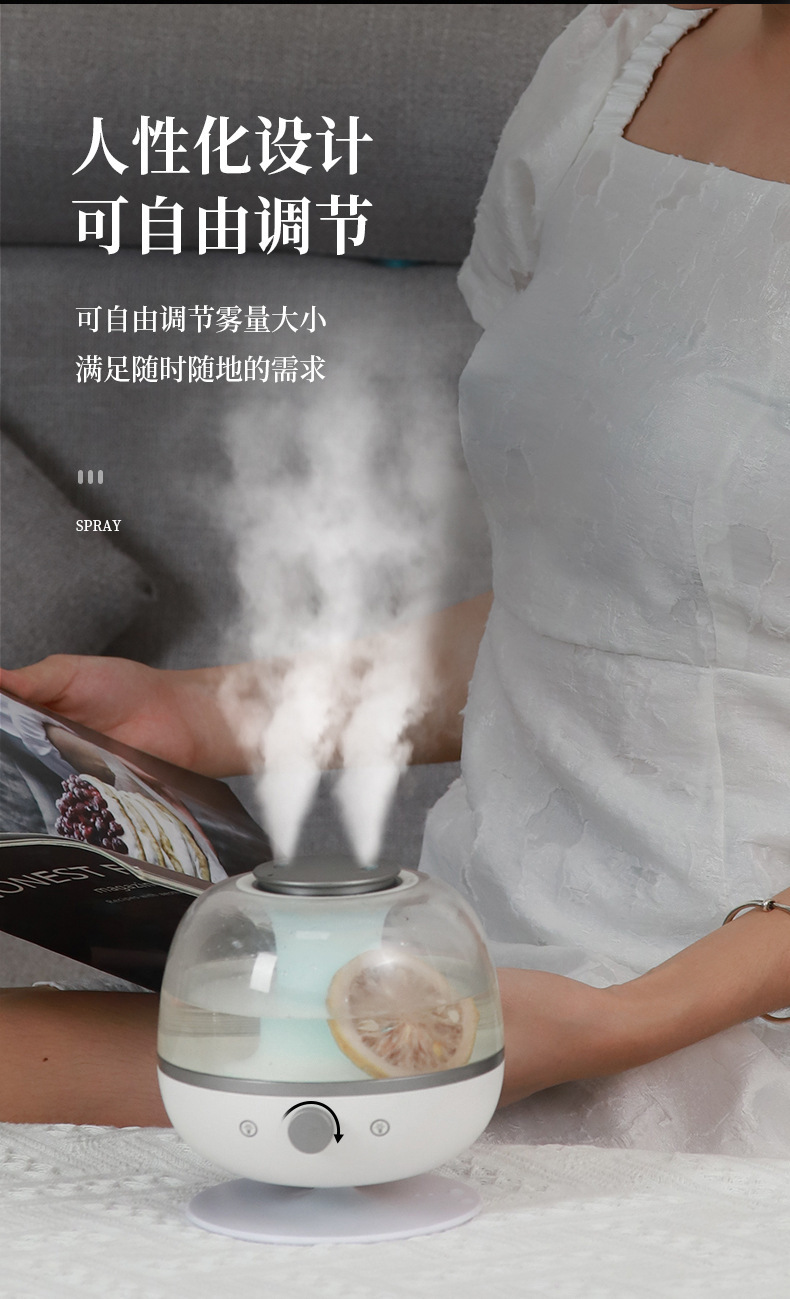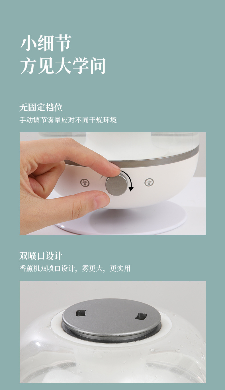 外贸专供雾景香薰机简约七彩氛围灯迷你加湿器卧室双喷香薰机