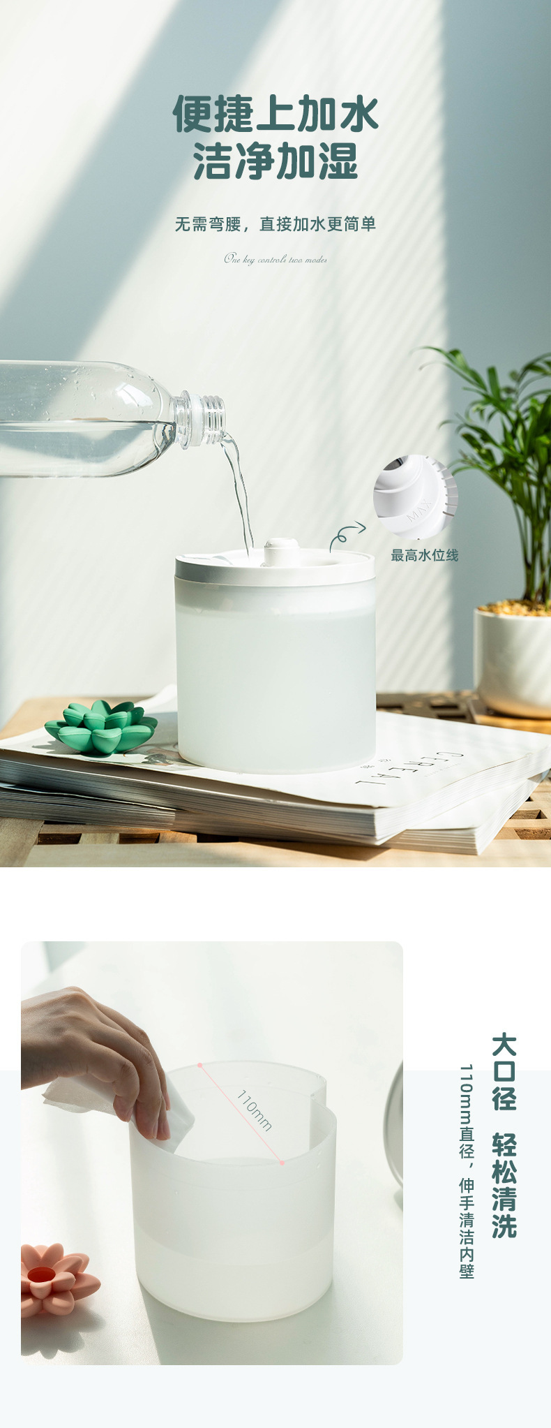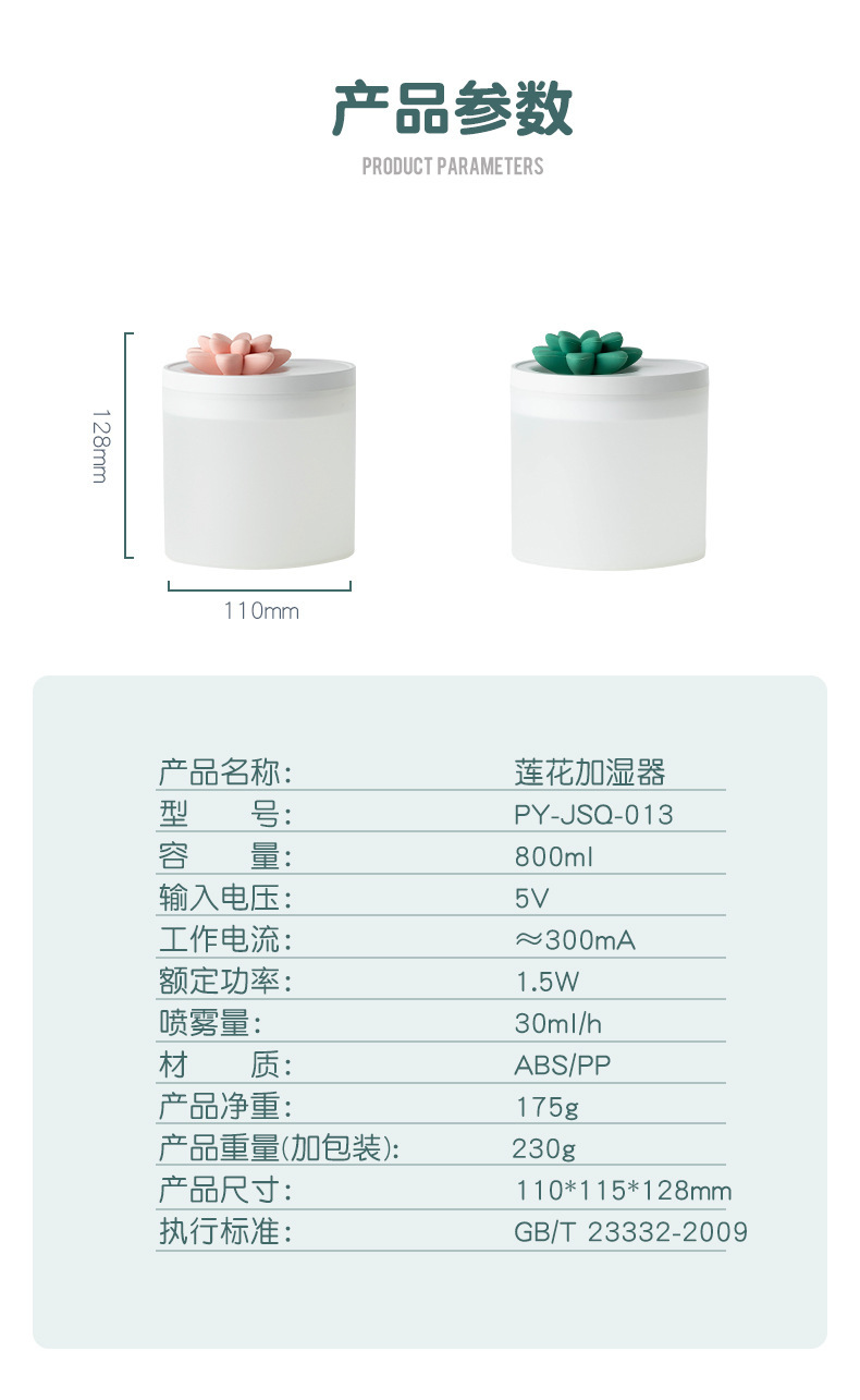外贸专供莲花加湿器迷你USB家居办公室雾化器便携空气净化加湿器