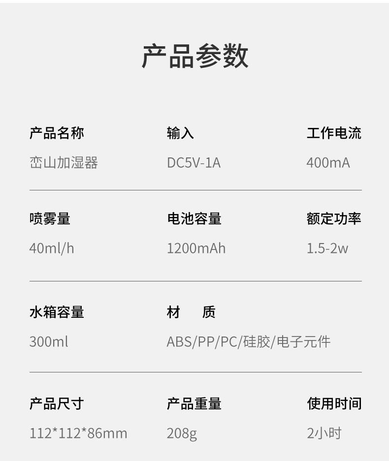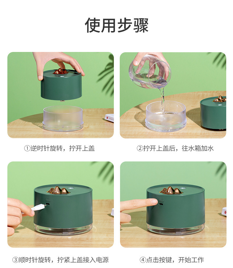 外贸专供峦山加湿器便携桌面氛围灯喷雾补水仪USB迷你卧室加湿器