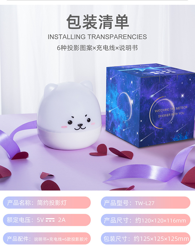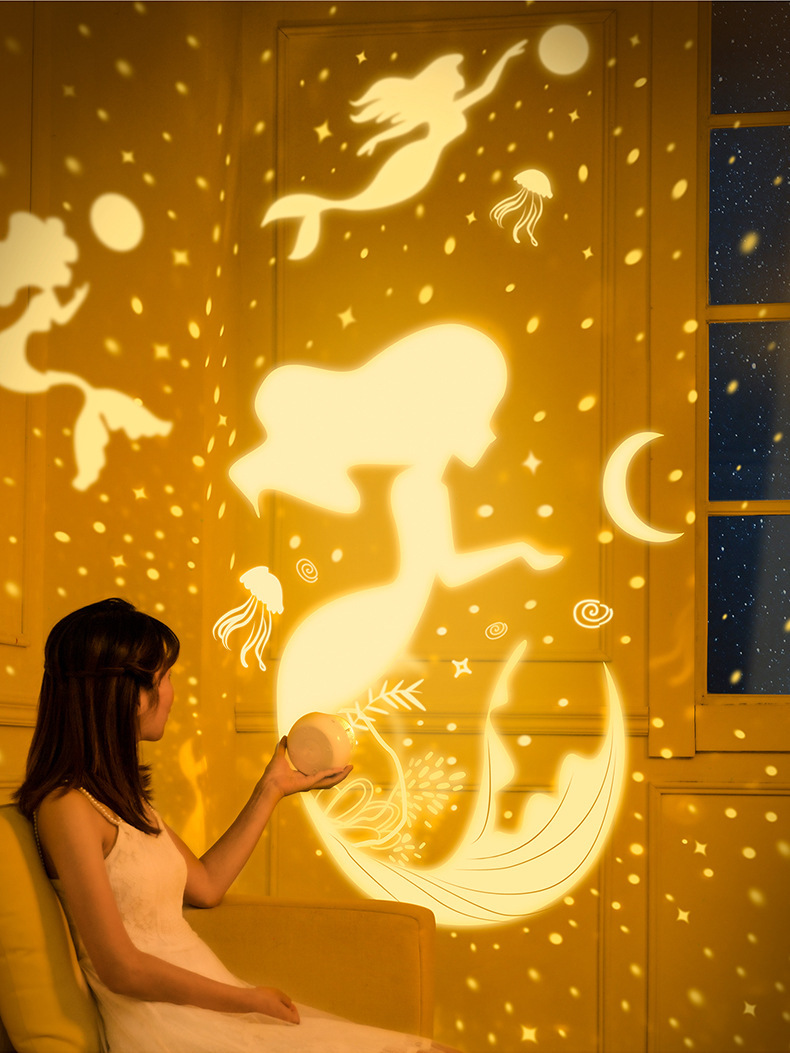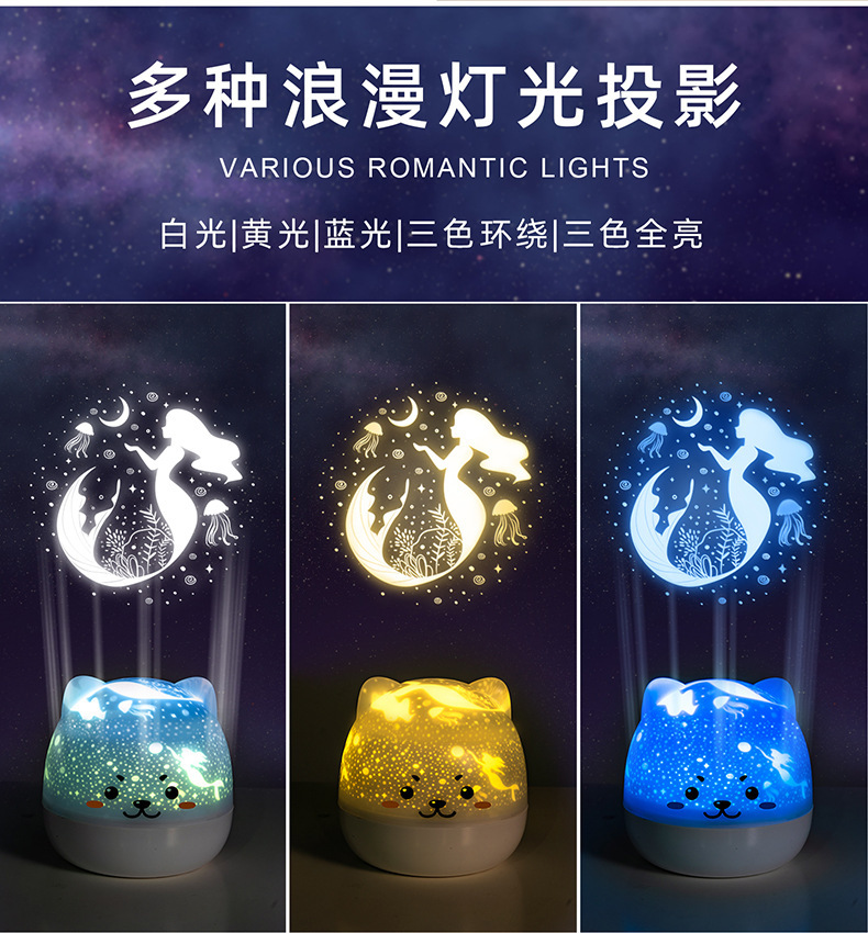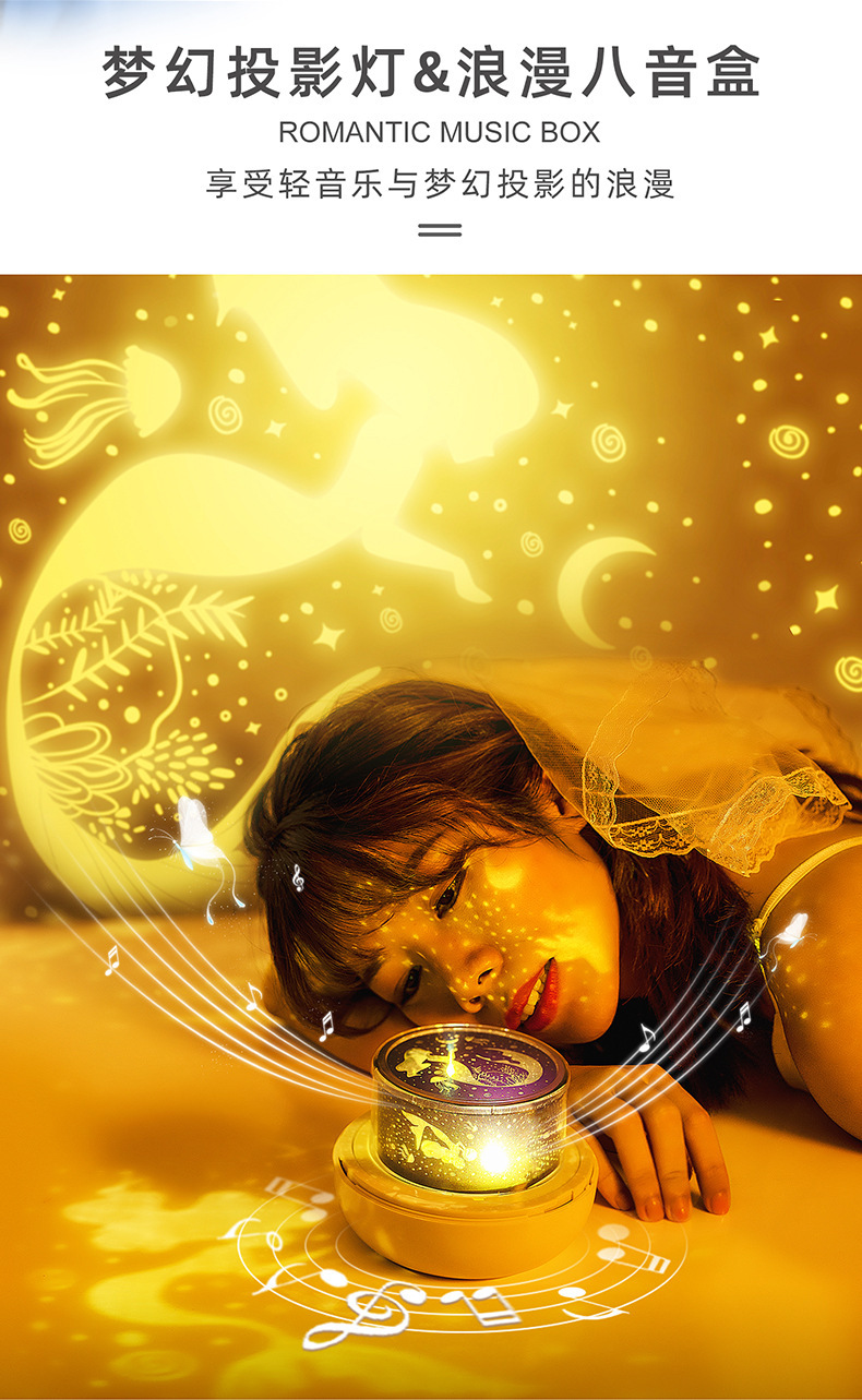 外贸专供简约星空投影灯迷你旋转音乐八音盒床头浪漫小夜灯