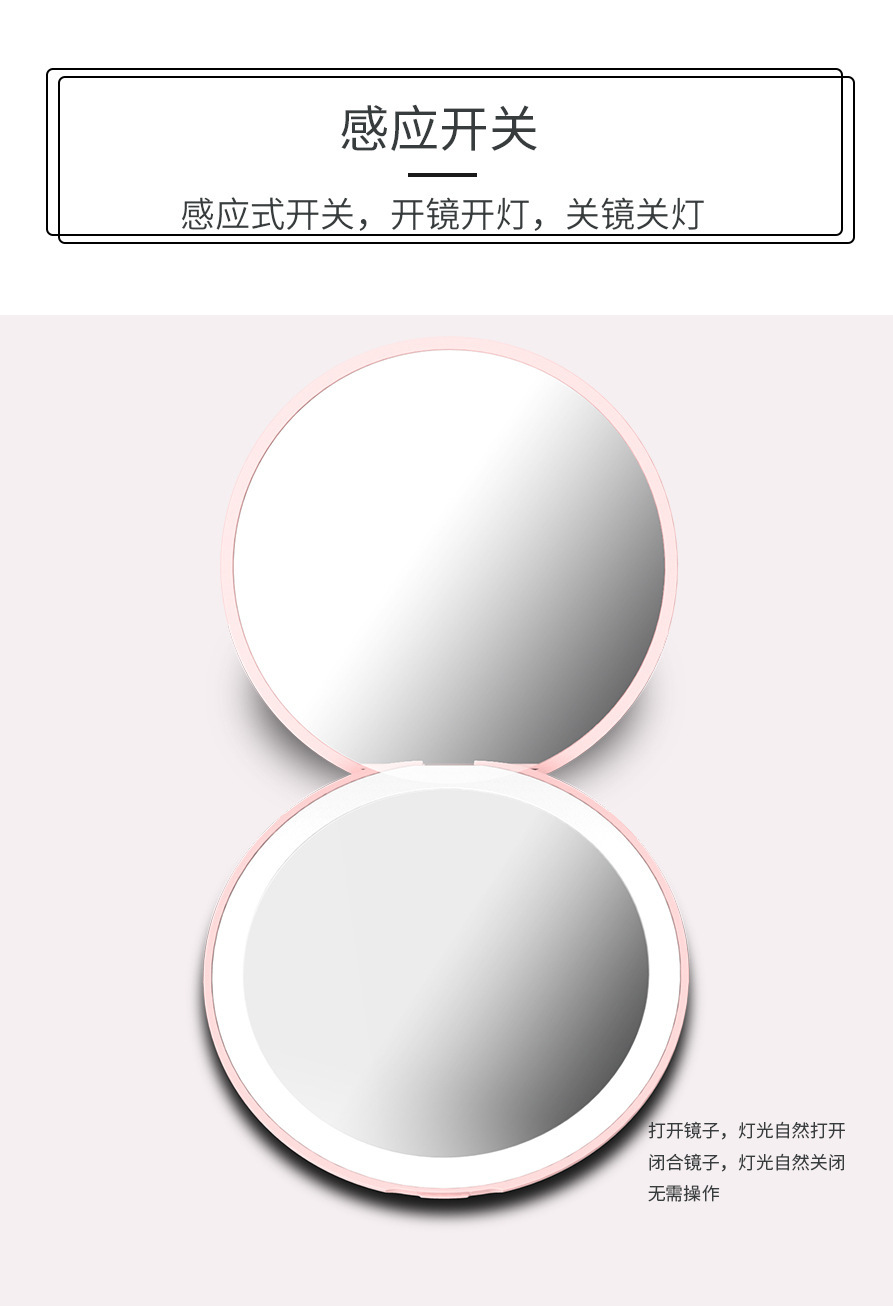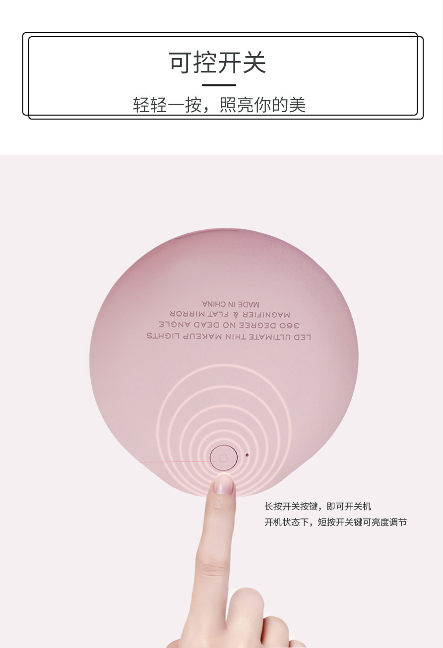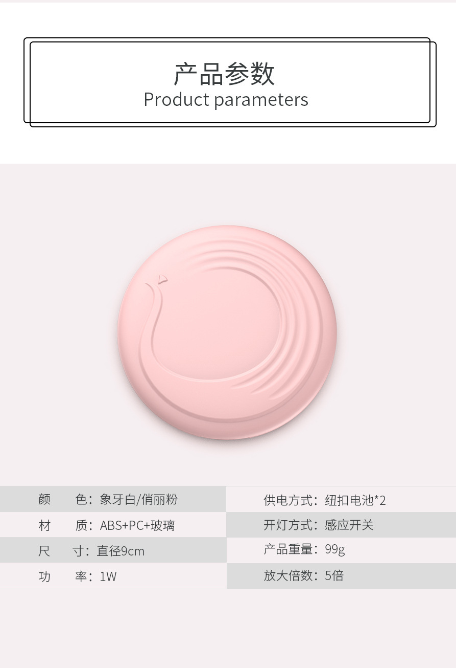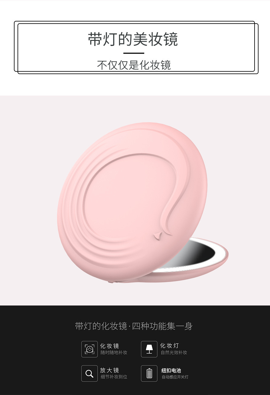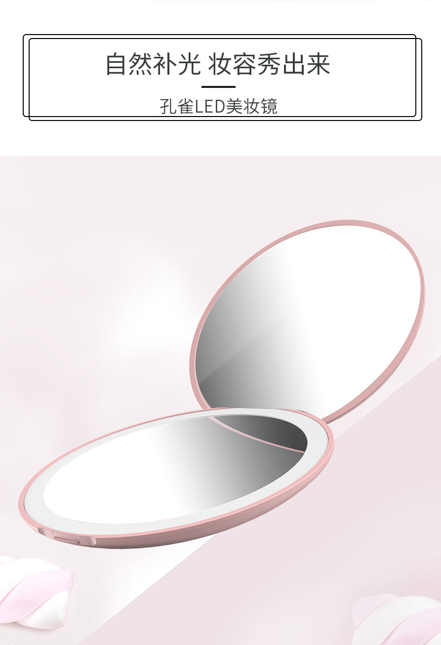外贸专供孔雀化妆镜便携带小夜灯双镜面纽扣电池款高清化妆镜