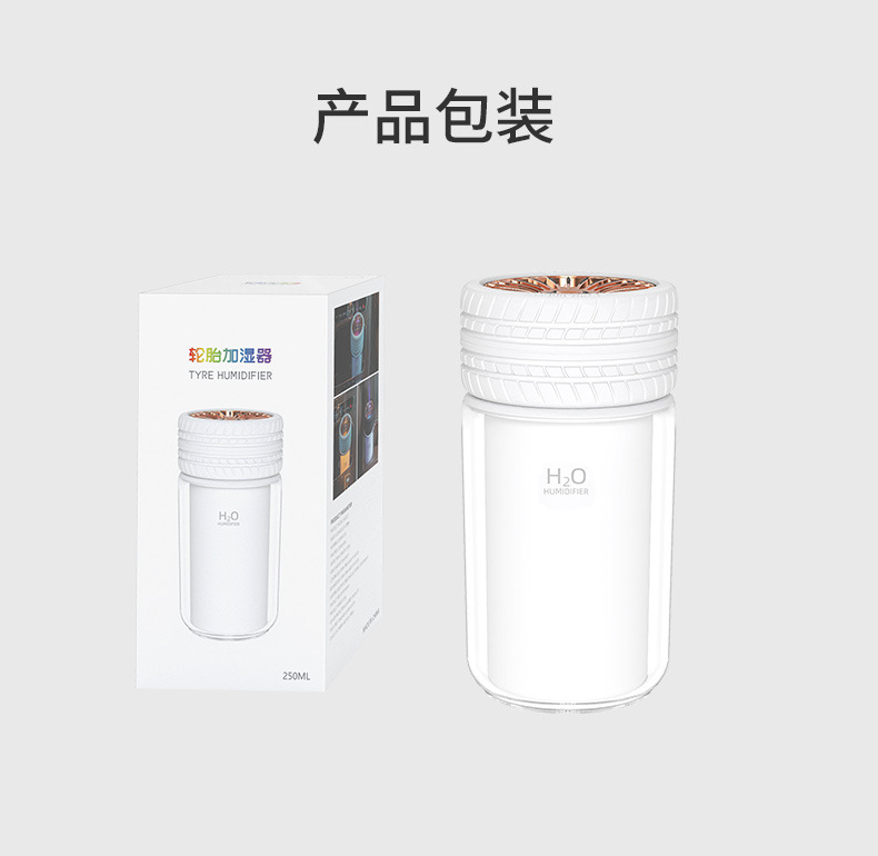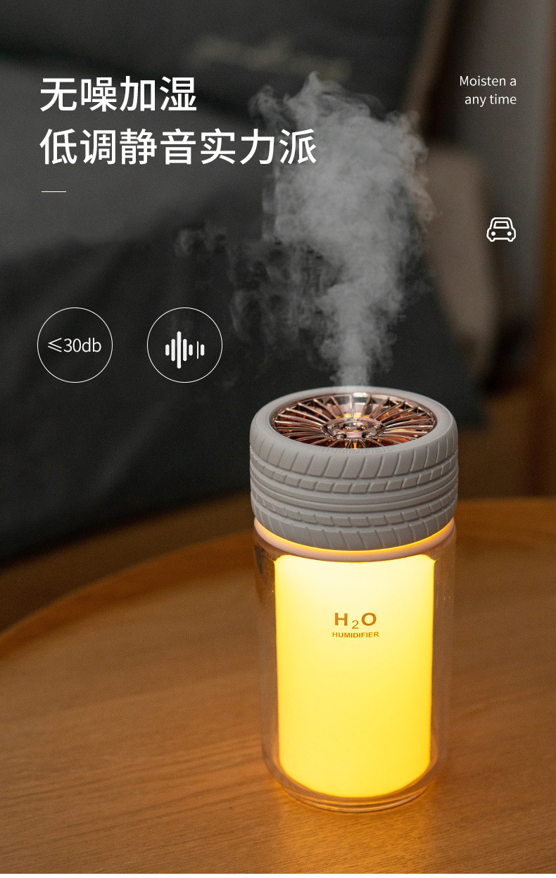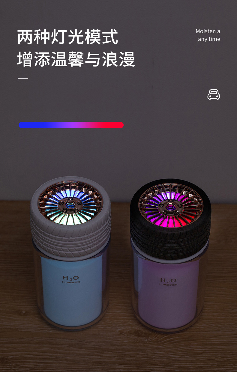 外贸专供新款USB轮胎加湿器车载办公补水桌面夜光迷你加湿器
