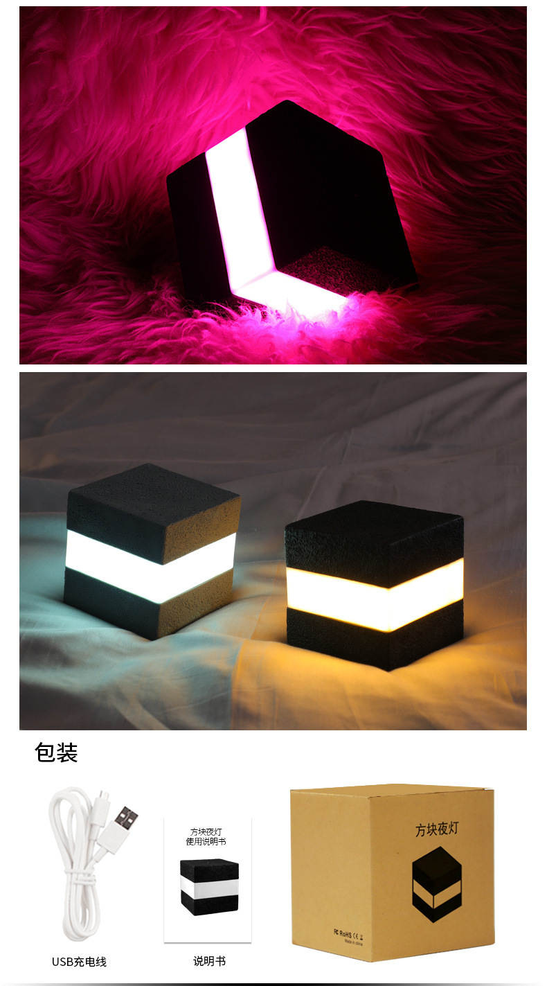 外贸专供方块夜灯餐厅酒吧咖啡厅七彩氛围灯USB学生宿舍LED小夜灯