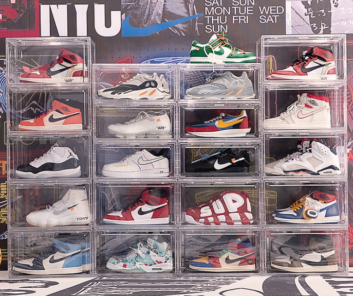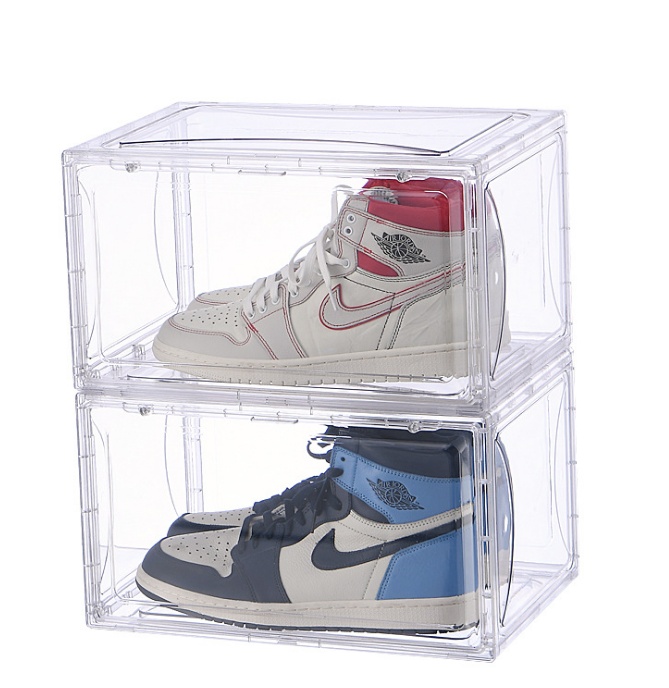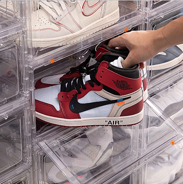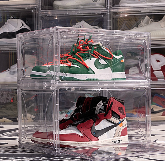 塑料加厚鞋盒透明AJ篮球鞋收纳盒 磁吸式鞋盒折叠可叠加收纳盒