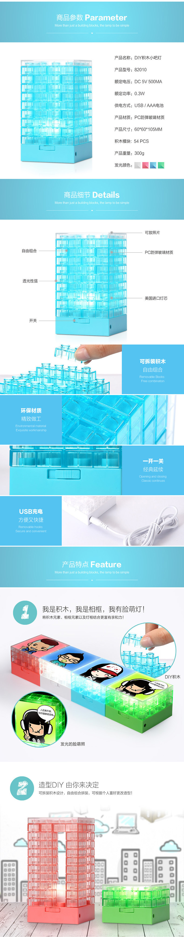 外贸专供小DIY积木小吧灯多功能笔筒小夜灯 USB台灯床头灯