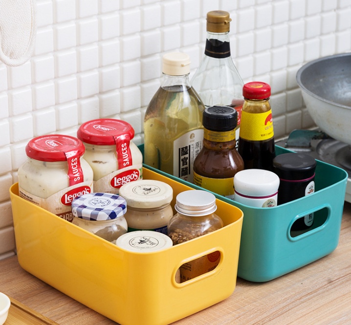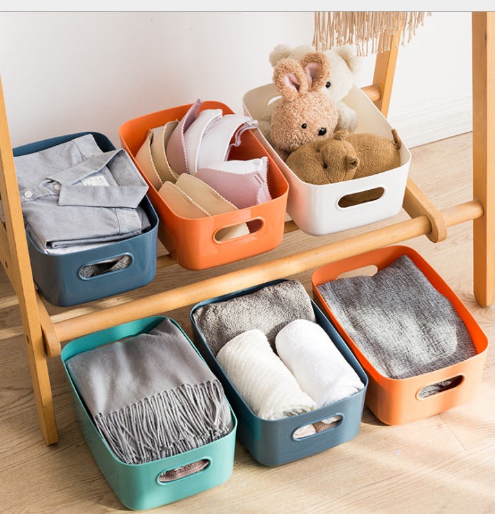 日式塑料收纳筐桌面杂物收纳盒衣物整理盒莫兰迪色收纳篮小号