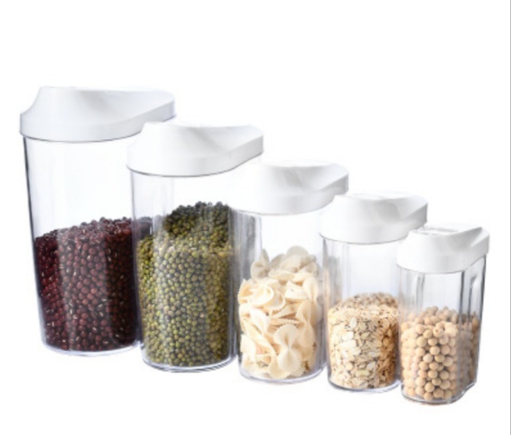 厨房加厚防潮五谷杂粮罐 透明五件套储物罐 塑料密封罐
