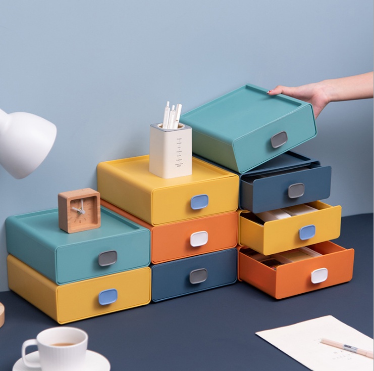 炫彩抽屉办公室整理箱 口红化妆品收纳盒 桌面抽屉式置物架