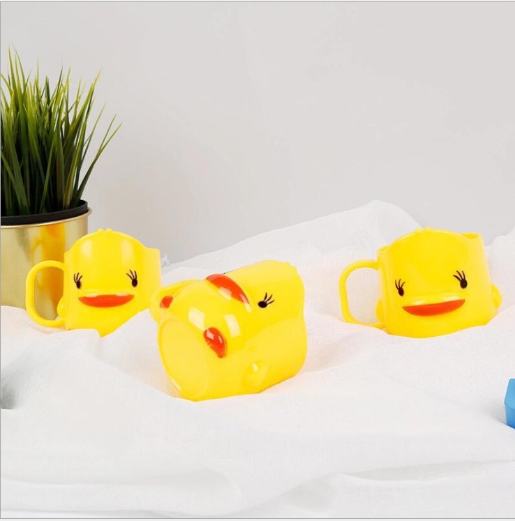 厂家直供 创意卡通小黄鸭茶杯 塑料儿童洗漱口水杯 卡通刷牙杯子