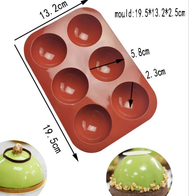 六连半圆半球形硅胶蛋糕模具 巧克力模具 半球布丁模具