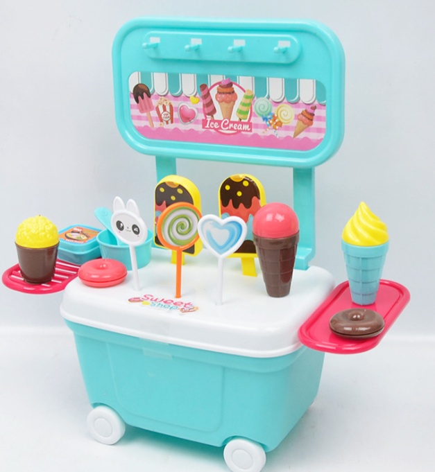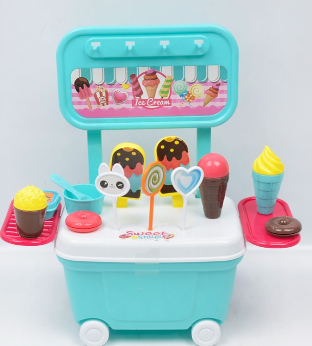 儿童过家家收纳台小推车 迷你甜品屋 冰淇淋食物套装
