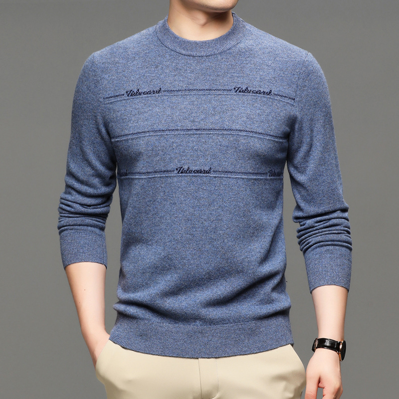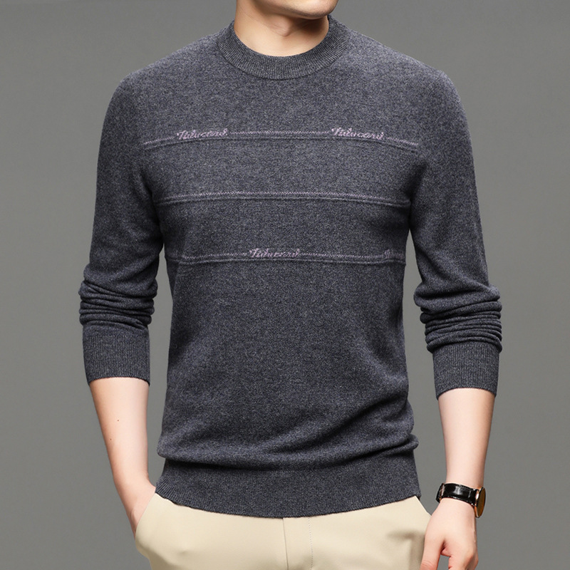 新款男士纯羊毛衫男大码套头毛衣男装圆领全羊毛针织打底毛衫批发