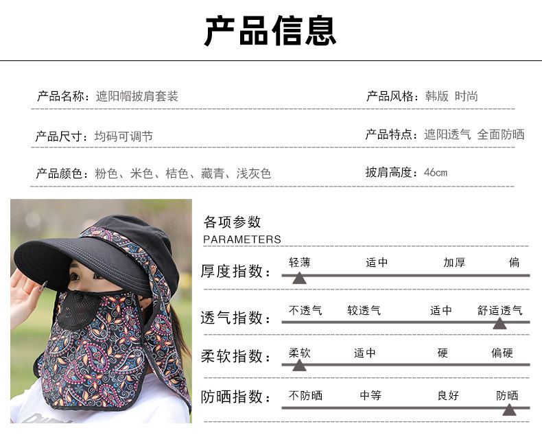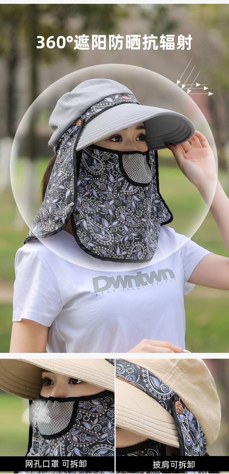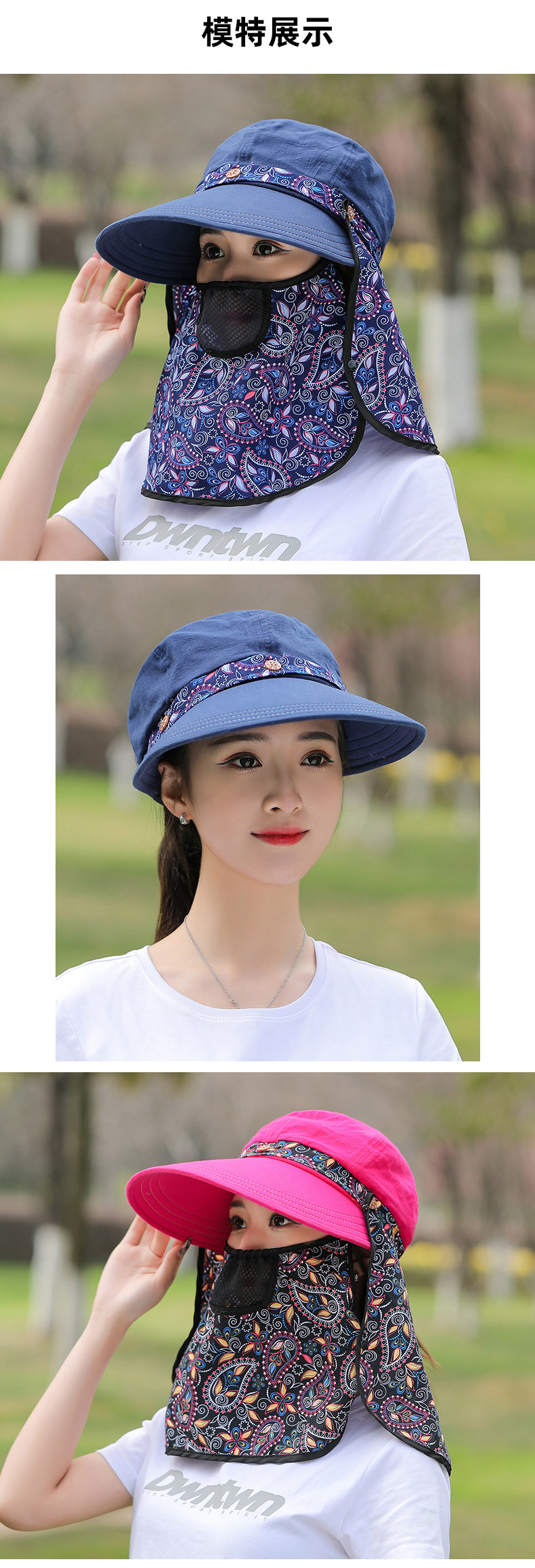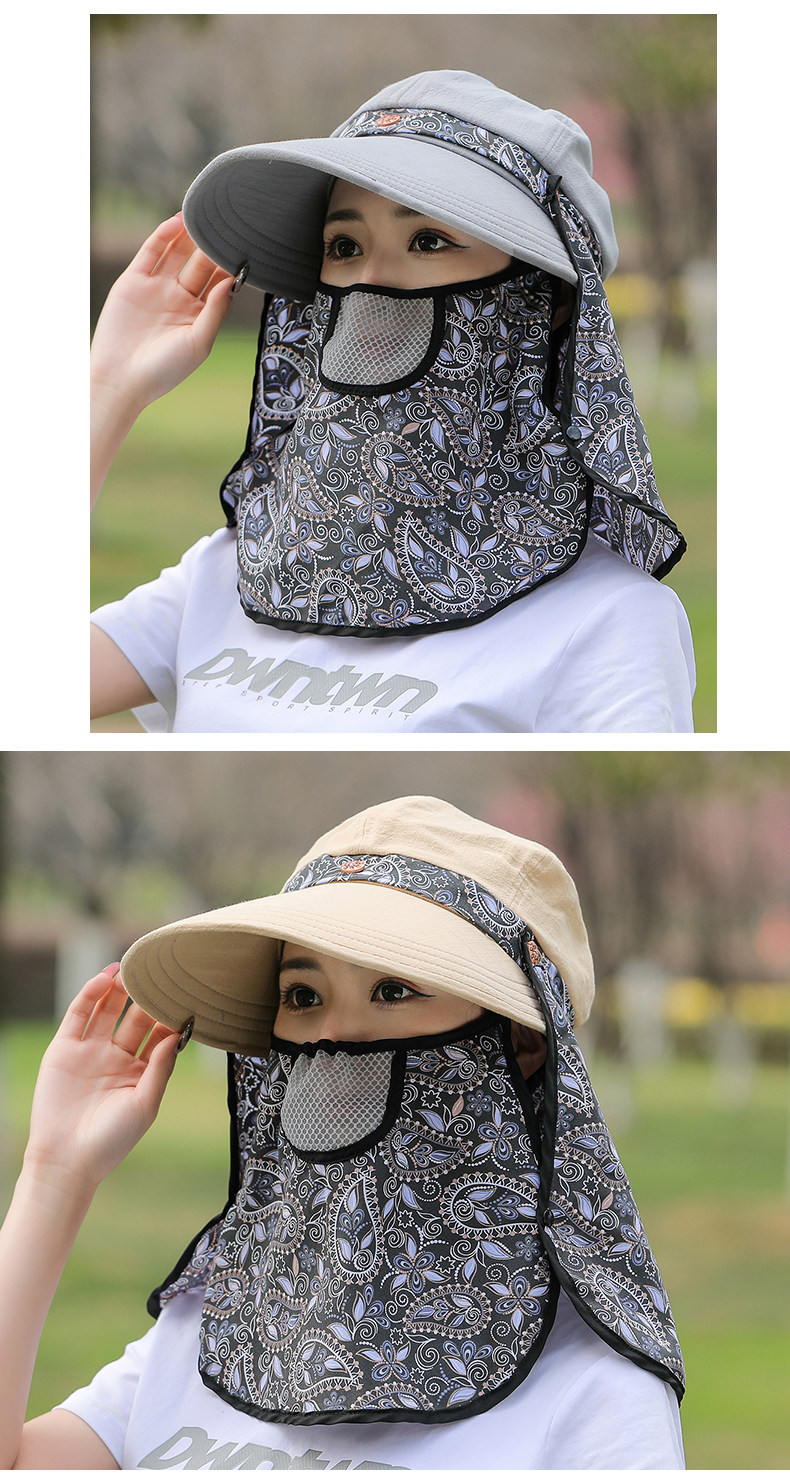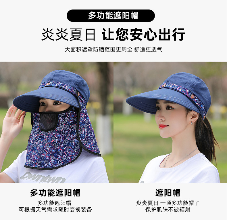 夏季帽子女遮阳防晒面罩防紫外线大沿护全脸采茶户外骑车太阳帽子
