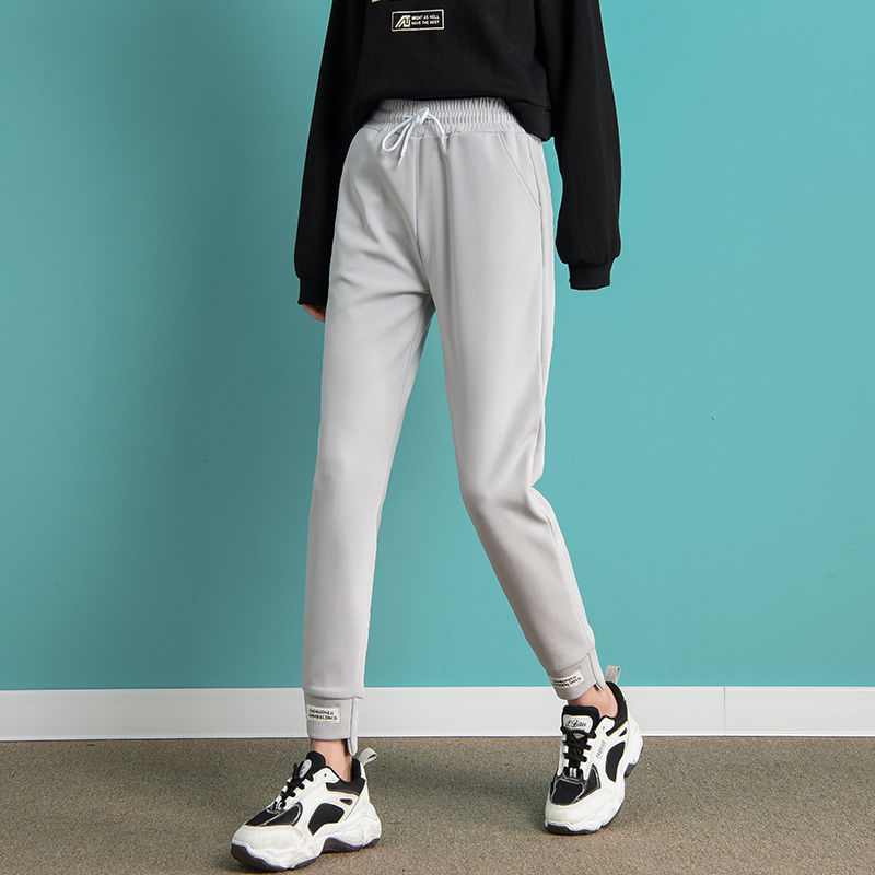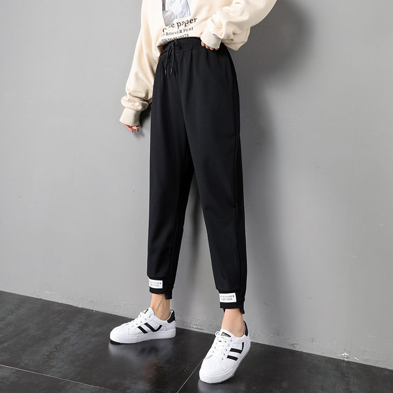 运动裤女春秋韩版宽松束脚卫裤黑色个性九分休闲裤子薄款