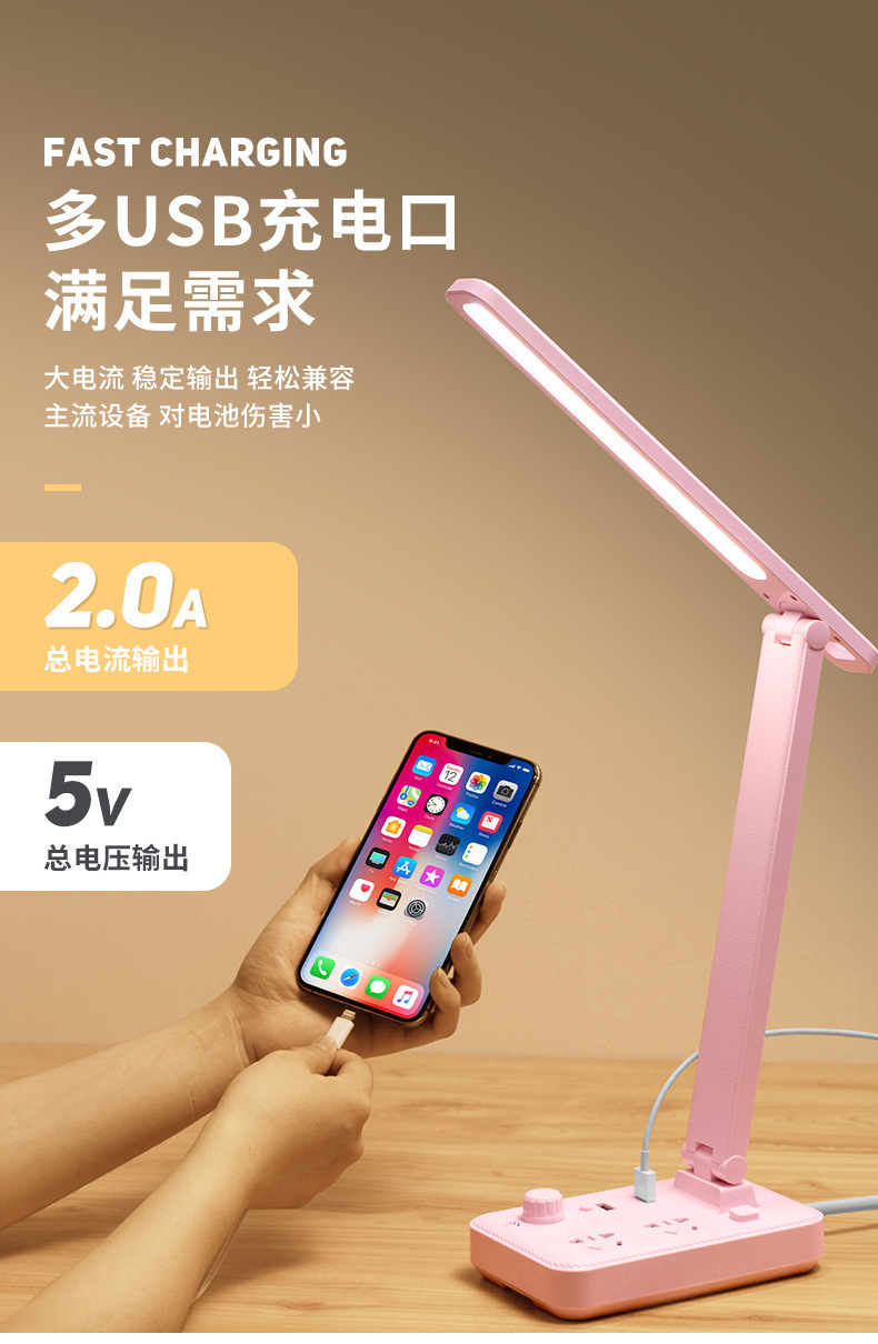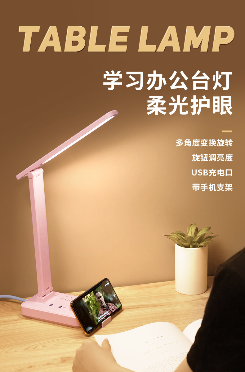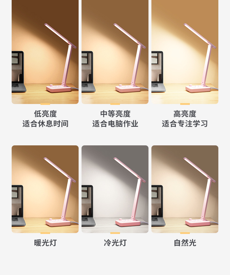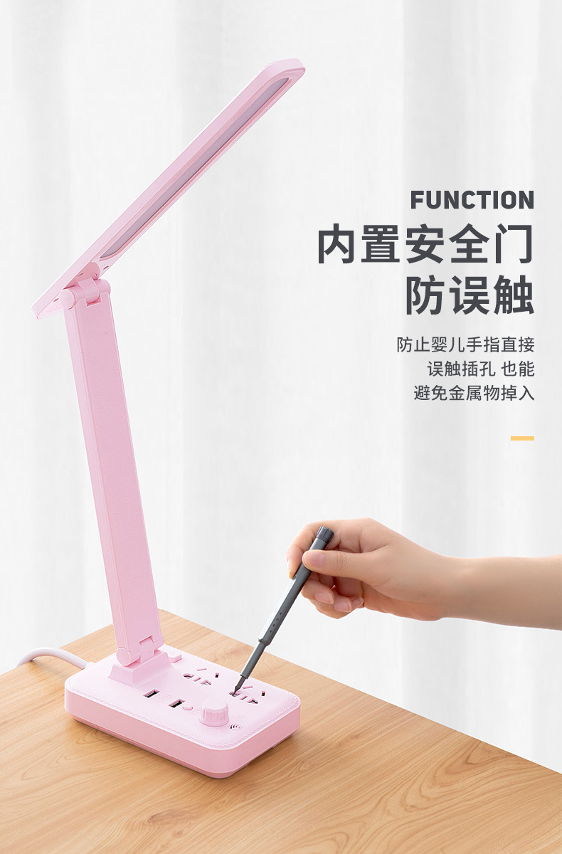 外贸专供led台灯插座护眼usb充电学生宿舍阅读多功能台灯插排插