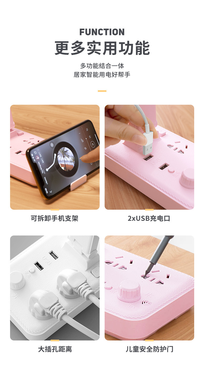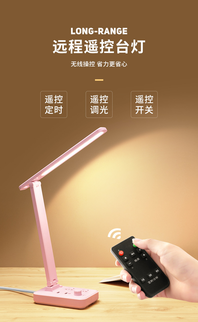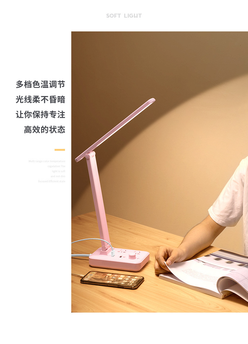 外贸专供led台灯插座护眼usb充电学生宿舍阅读多功能台灯插排插