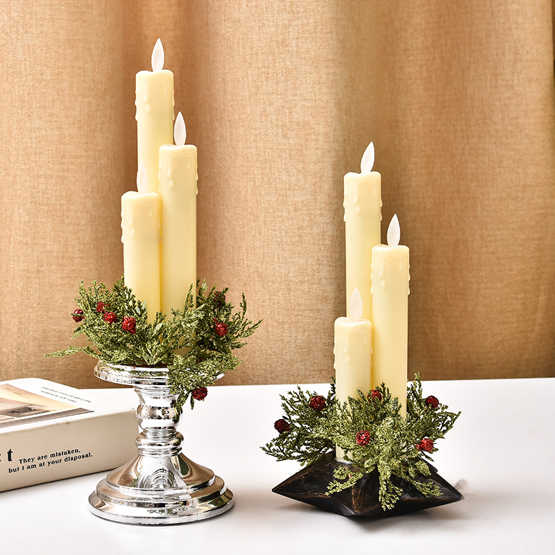 电子蜡烛 烛台三支摇摆蜡烛led婚庆简约白色大堂桌面布置用品批发