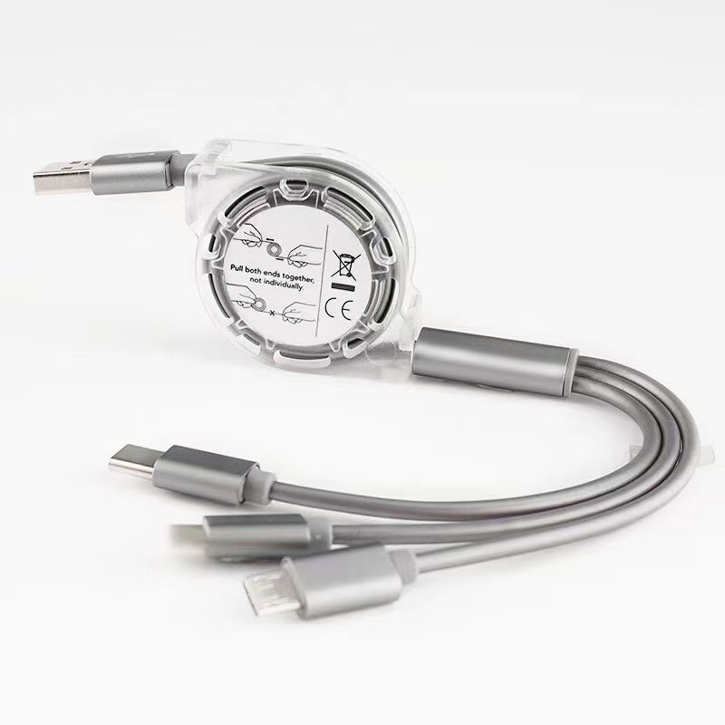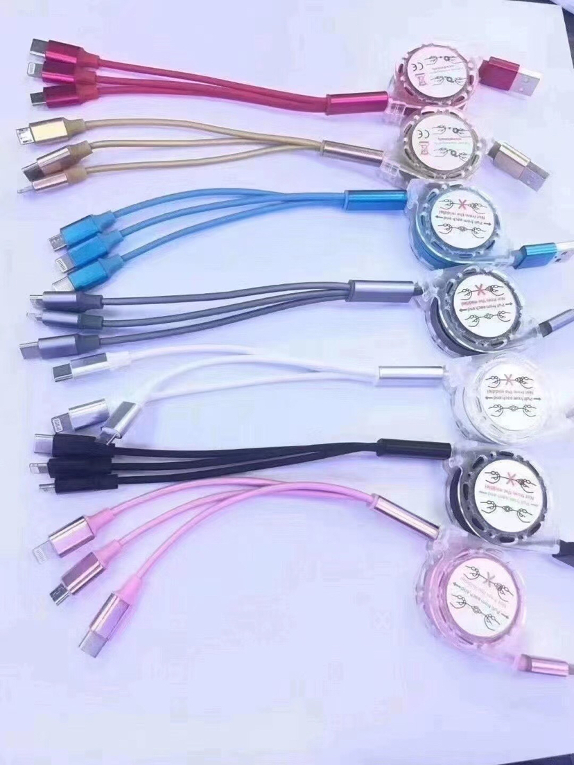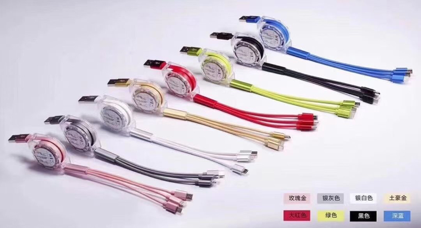 一拖三充电线 创意定制logo礼品伸缩数据线 三合一