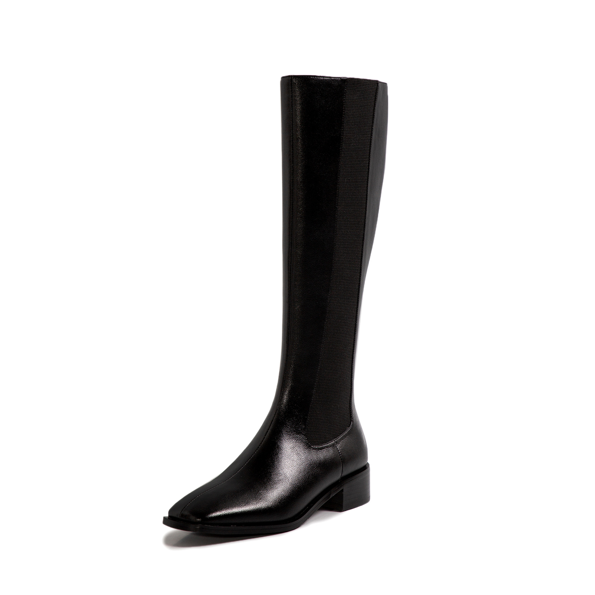 厂家直弹力全皮棕色长靴女2020冬季二层牛皮加绒保暖骑士靴