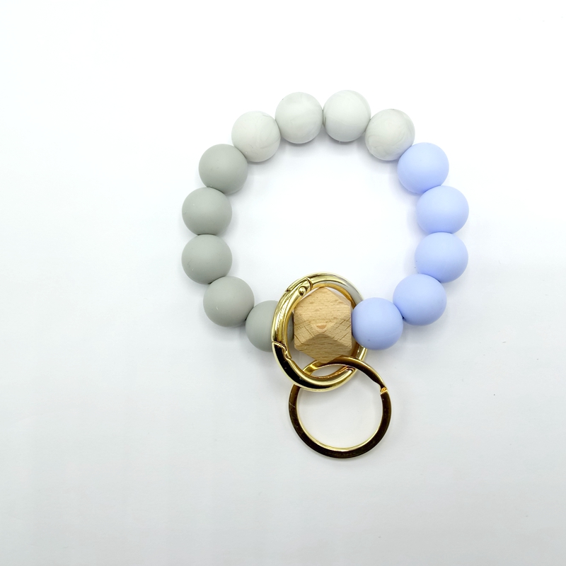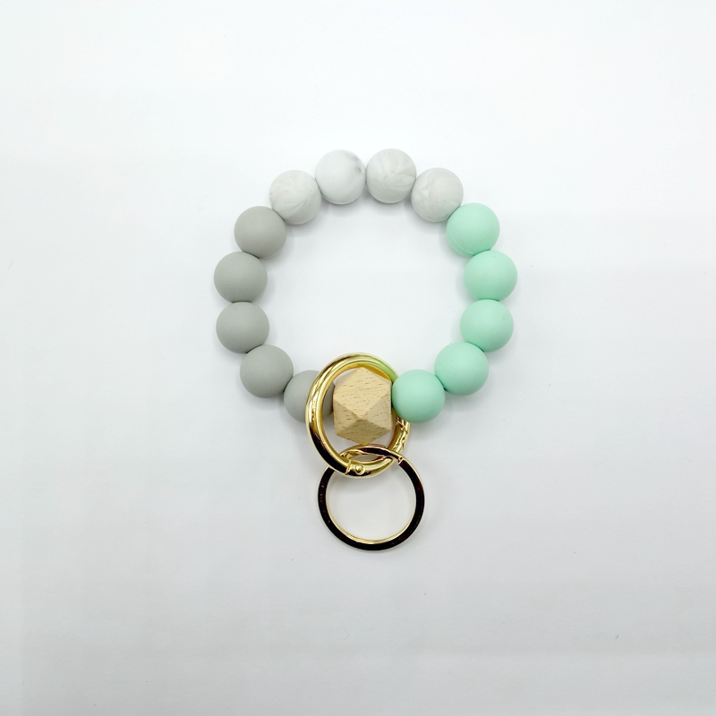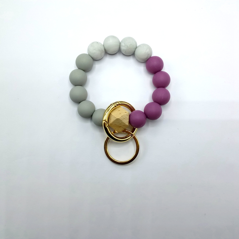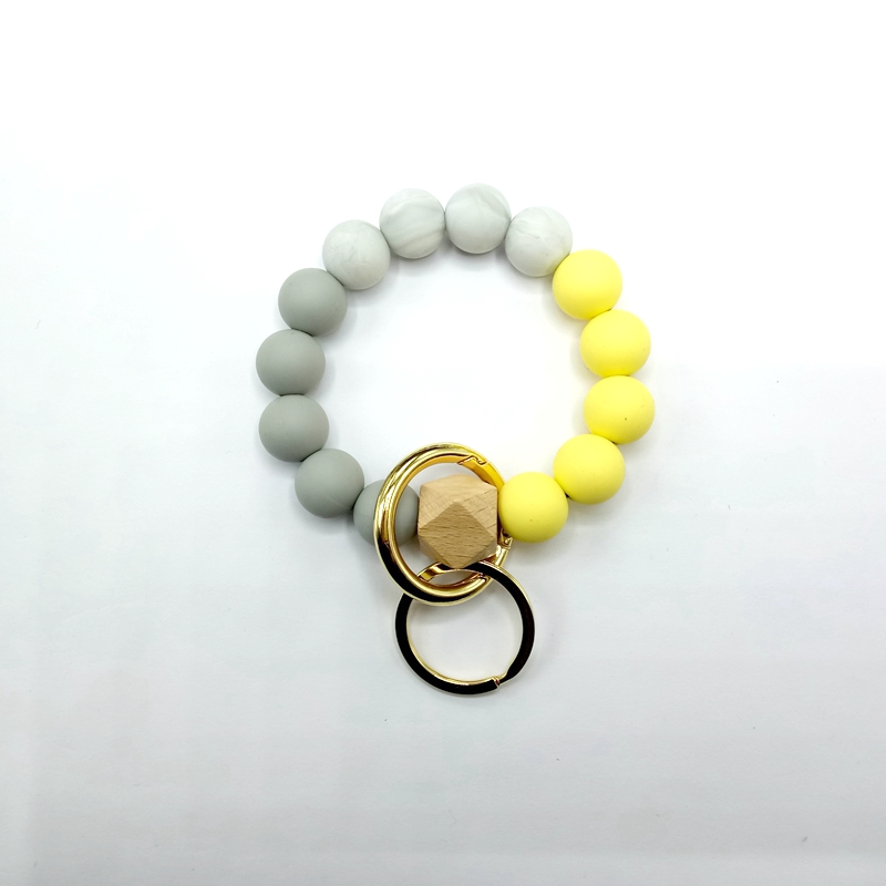 流苏木珠食物级硅胶珠手串钥匙扣女欧美跨境亚马逊热销手环钥匙圈