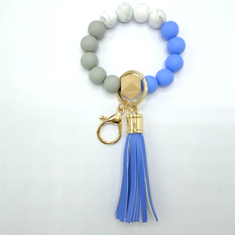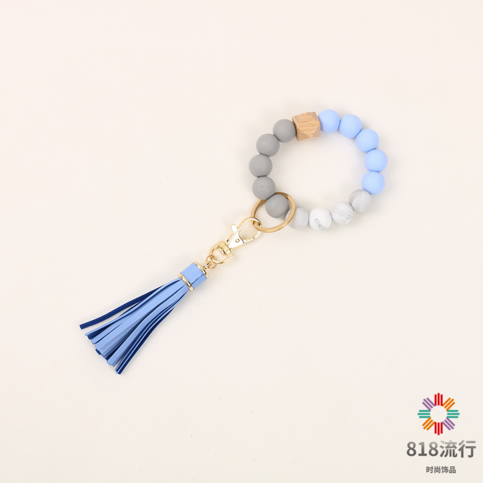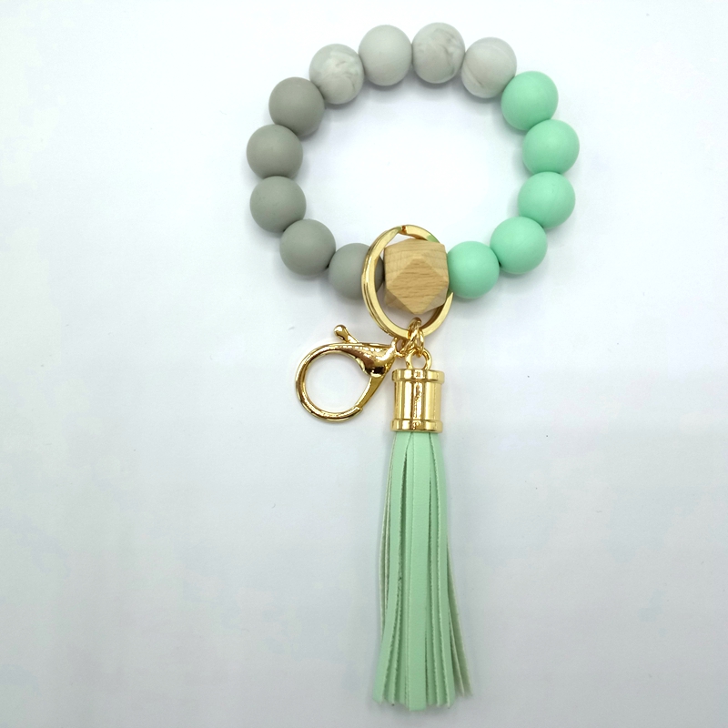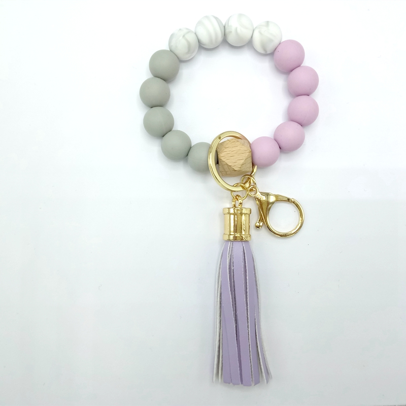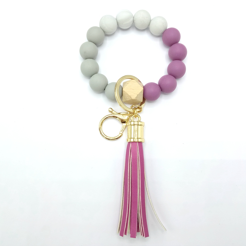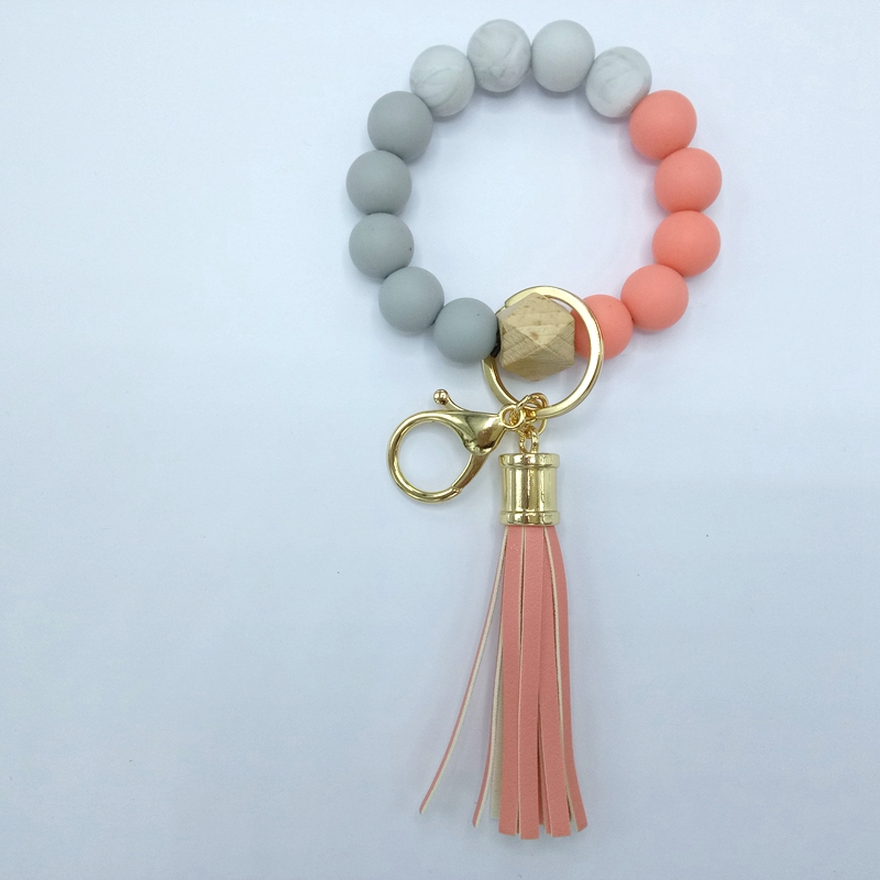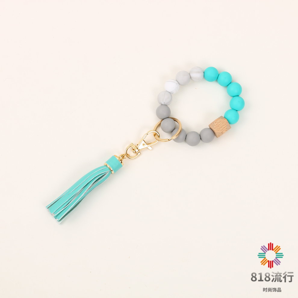 流苏木珠食物级硅胶珠手链钥匙扣女欧美跨境亚马逊热销手环钥匙圈