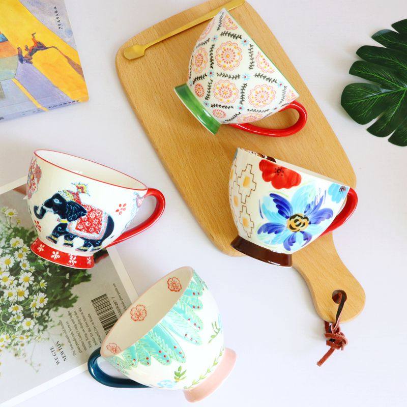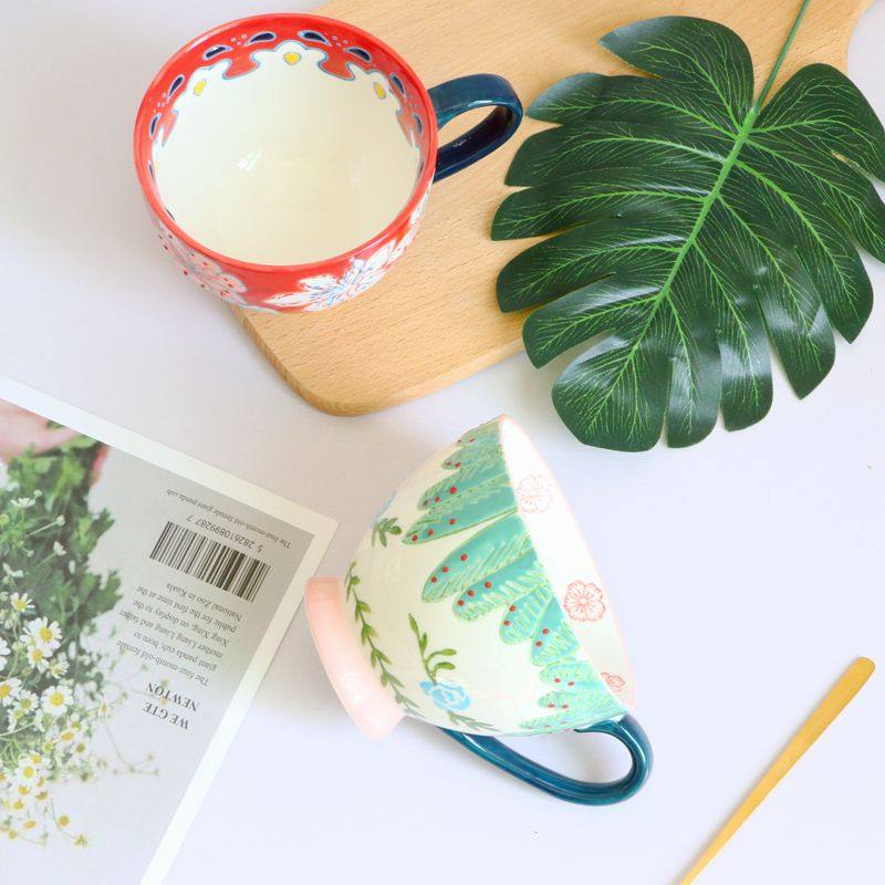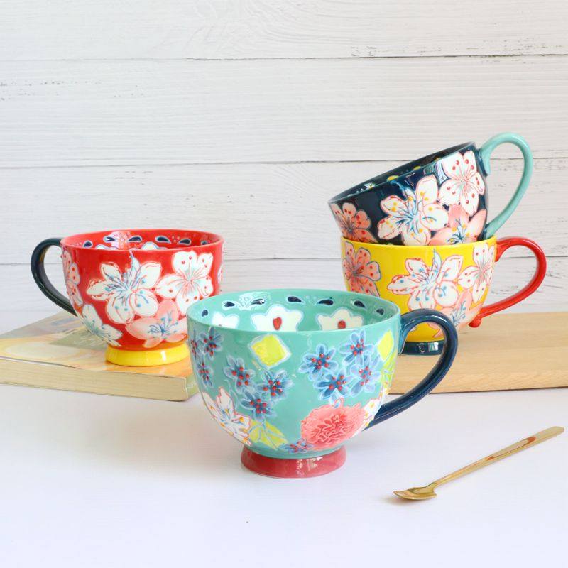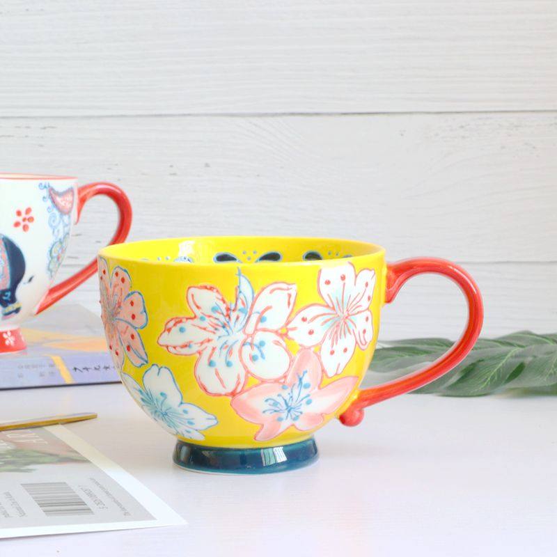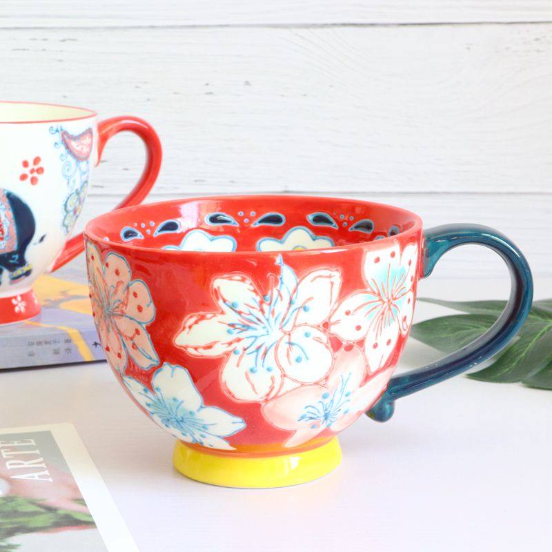 欧式网红ins陶瓷杯水杯浮雕陶瓷杯子早餐杯马克杯现货批发