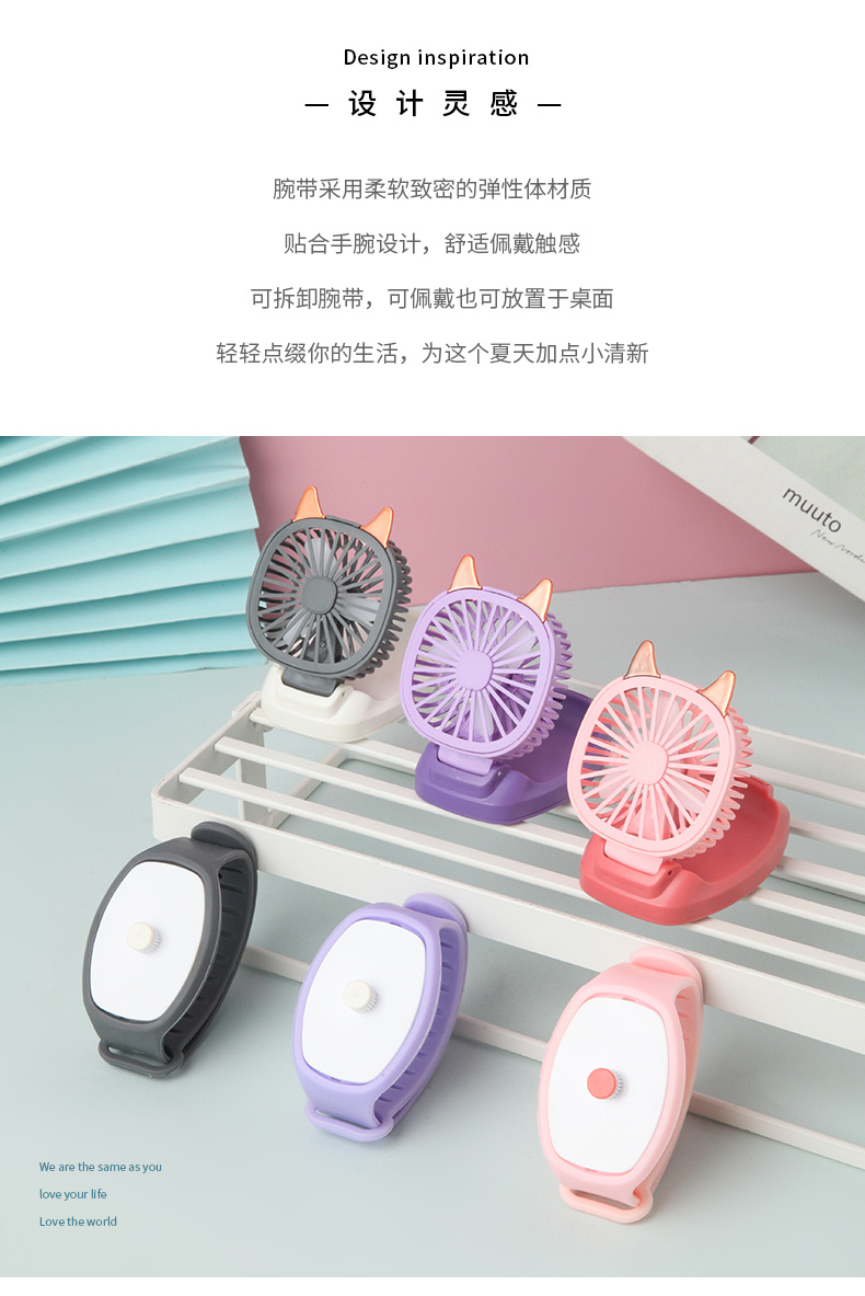 手表风扇USB迷你便携式学生随身手持电扇静音儿童随身携带可充电