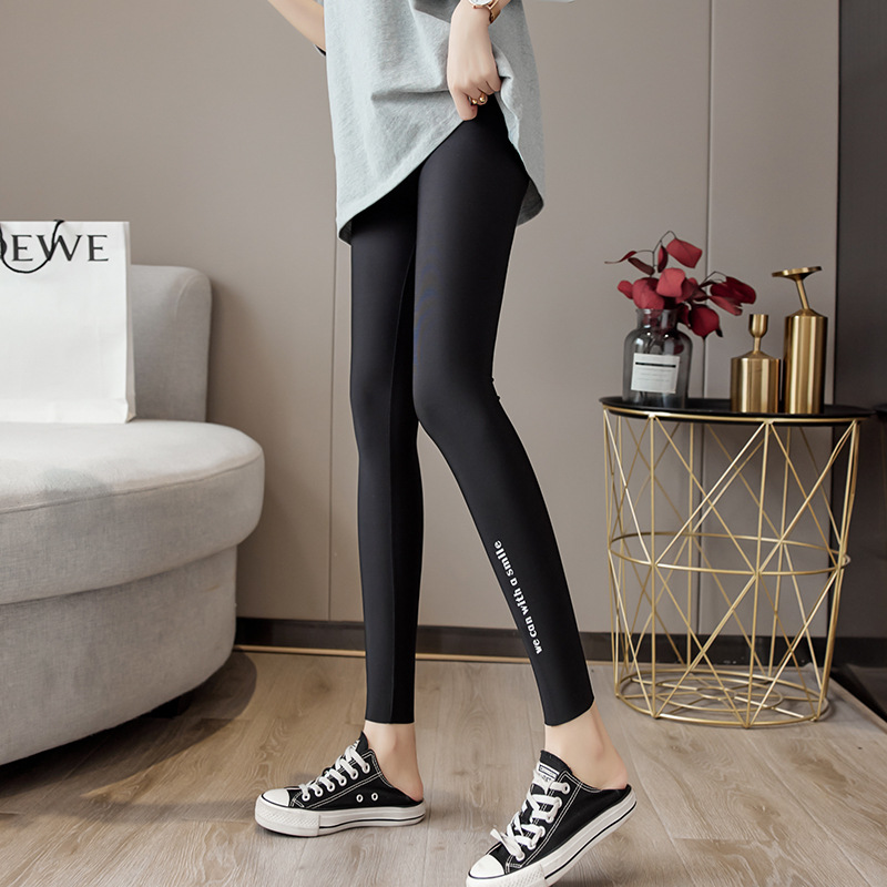 义乌夏季新款鲨鱼皮冰丝打底裤女高腰收腹外穿春秋薄款小脚九分裤