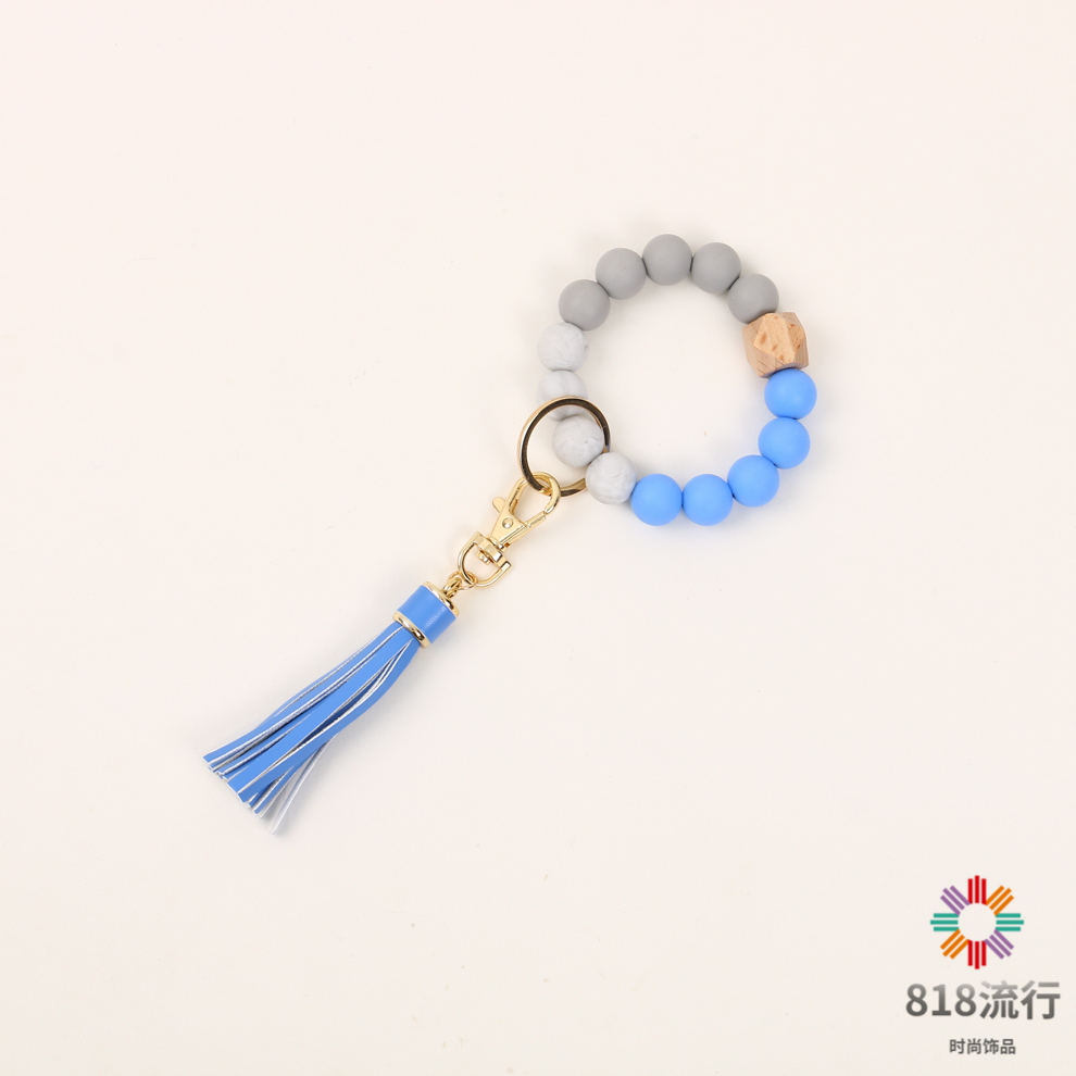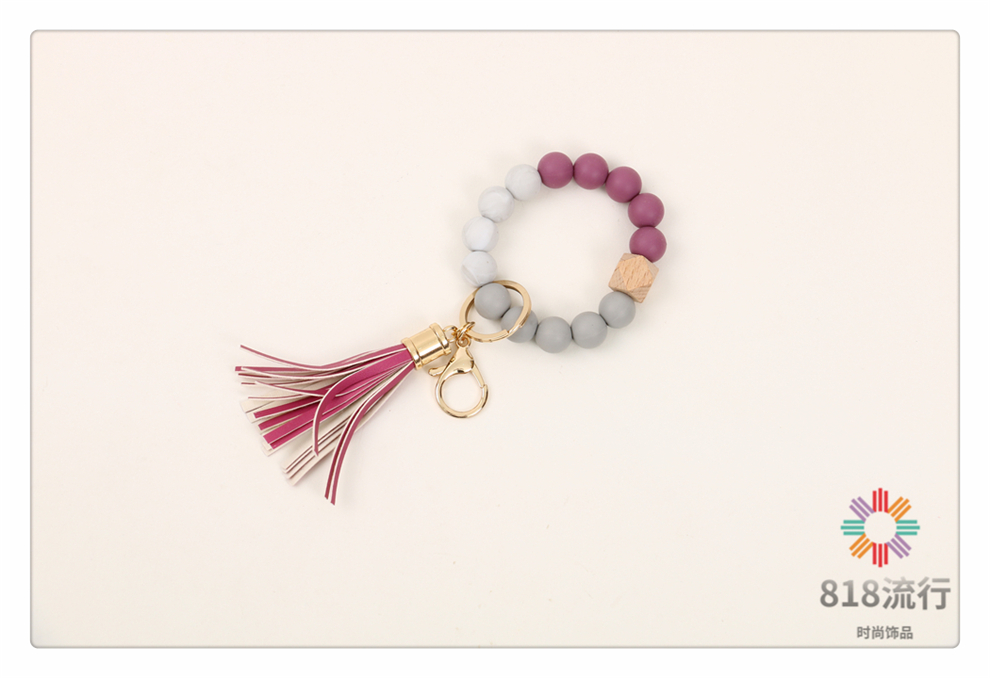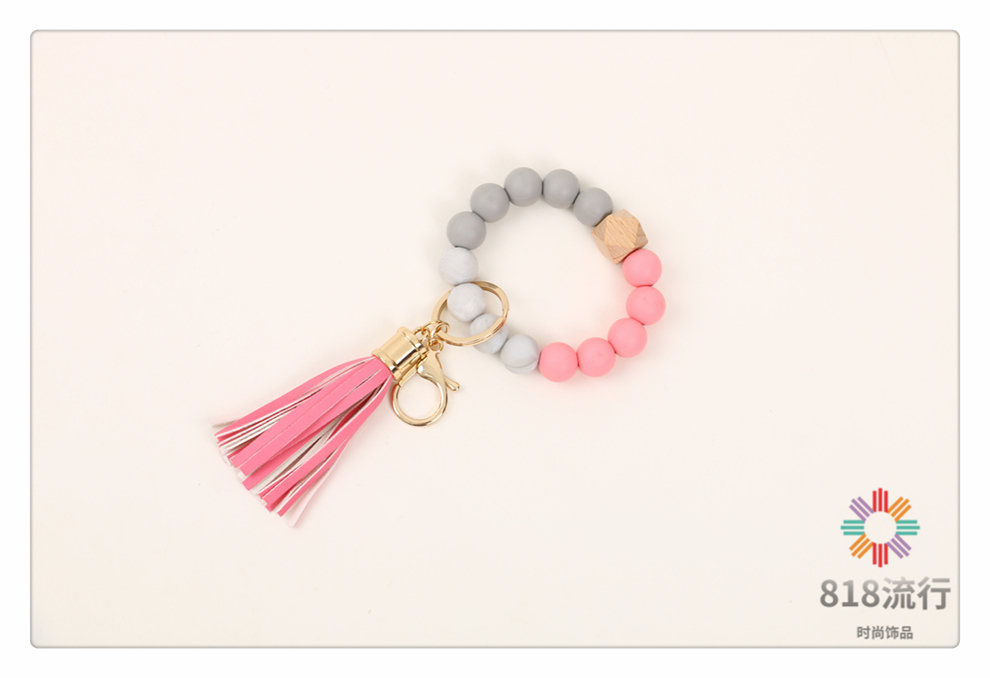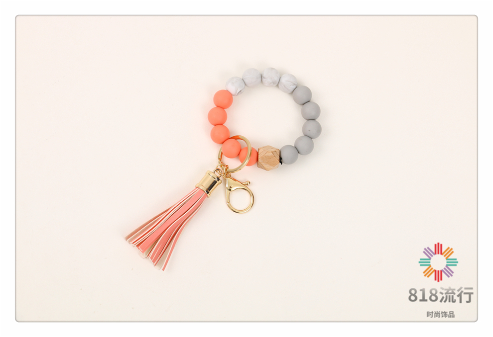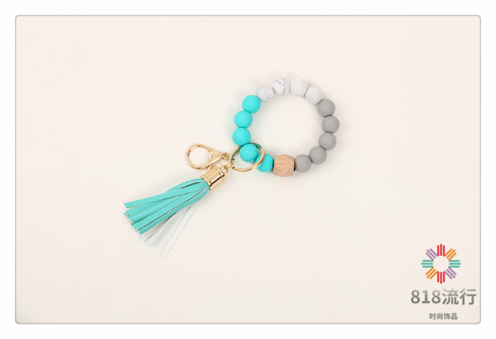 食品级硅胶珠手串钥匙扣生命树榉木木珠手环手镯食物级硅胶钥匙圈