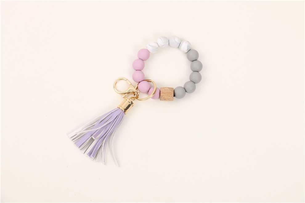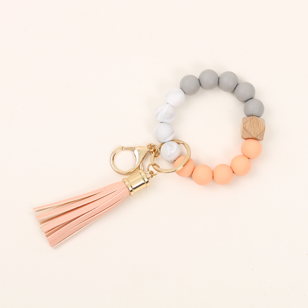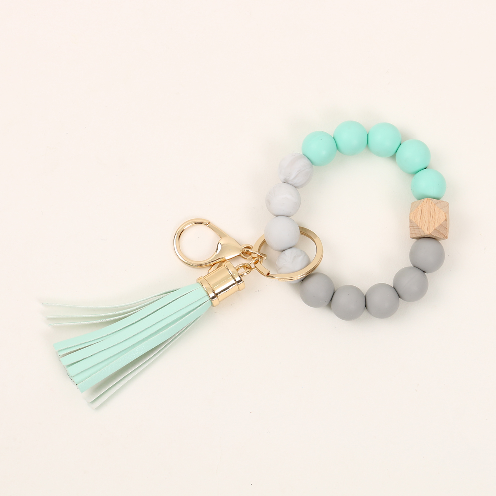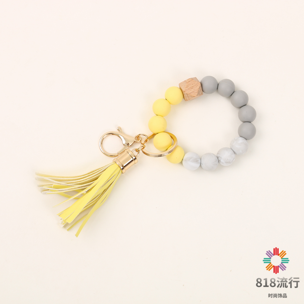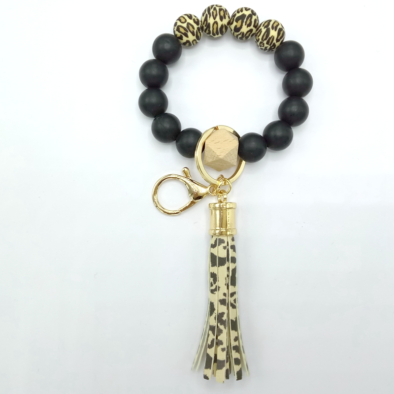 食品级硅胶珠手串钥匙扣生命树榉木木珠手环手镯食物级硅胶钥匙圈