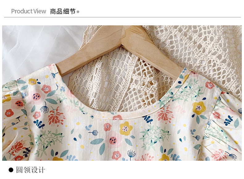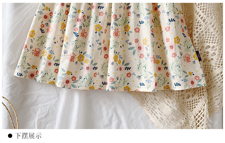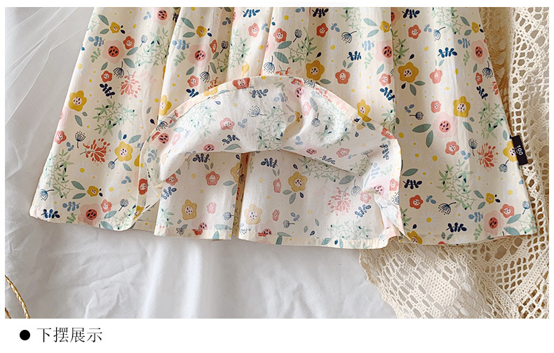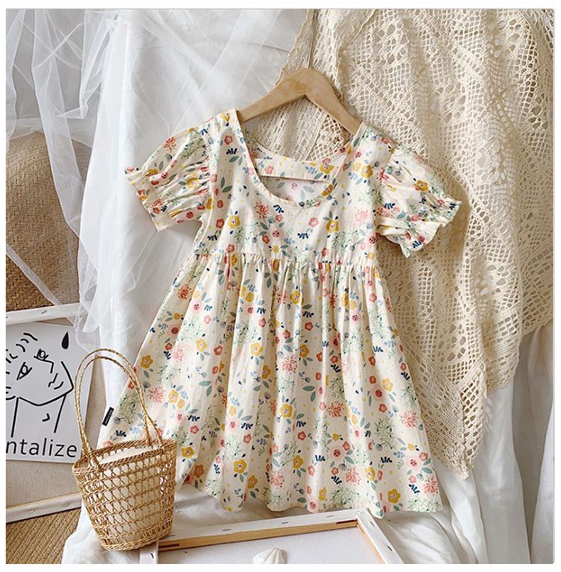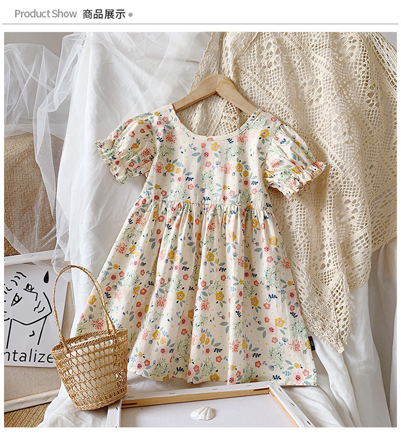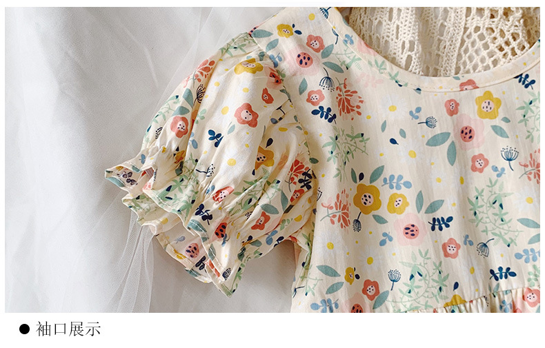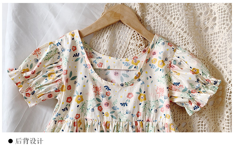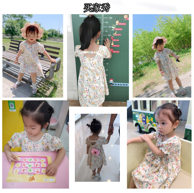 新款夏款女童裙 小女孩泡泡袖露背棉质碎花公主裙连衣裙子