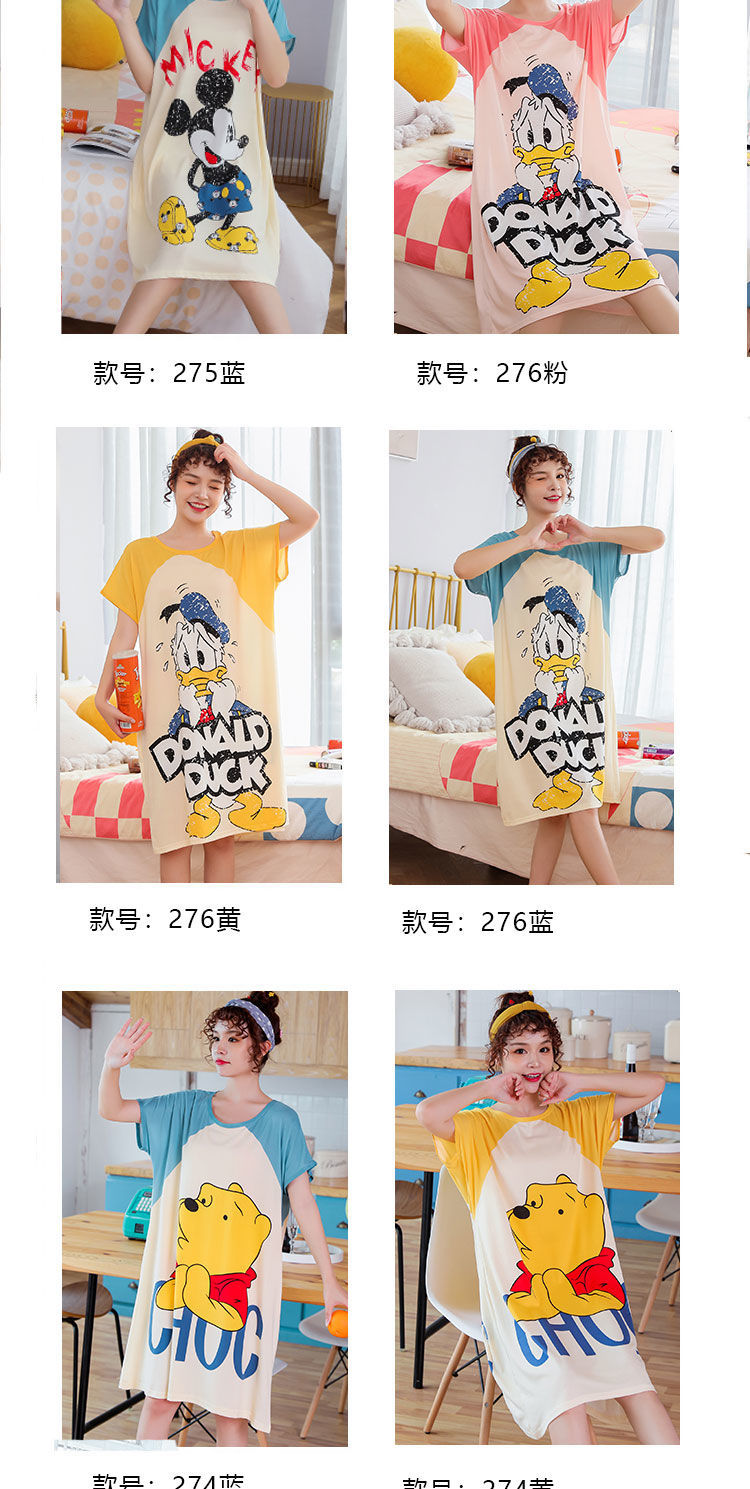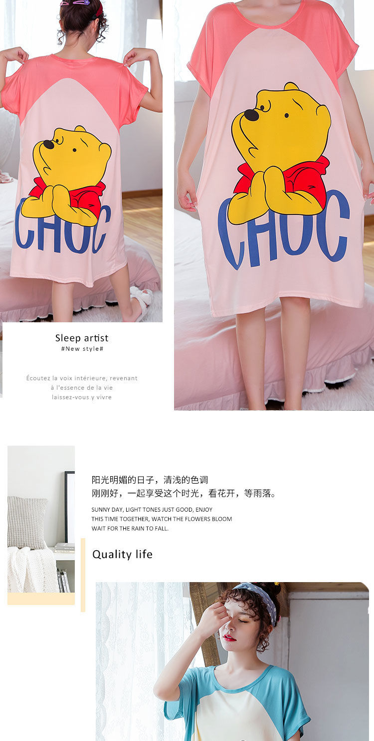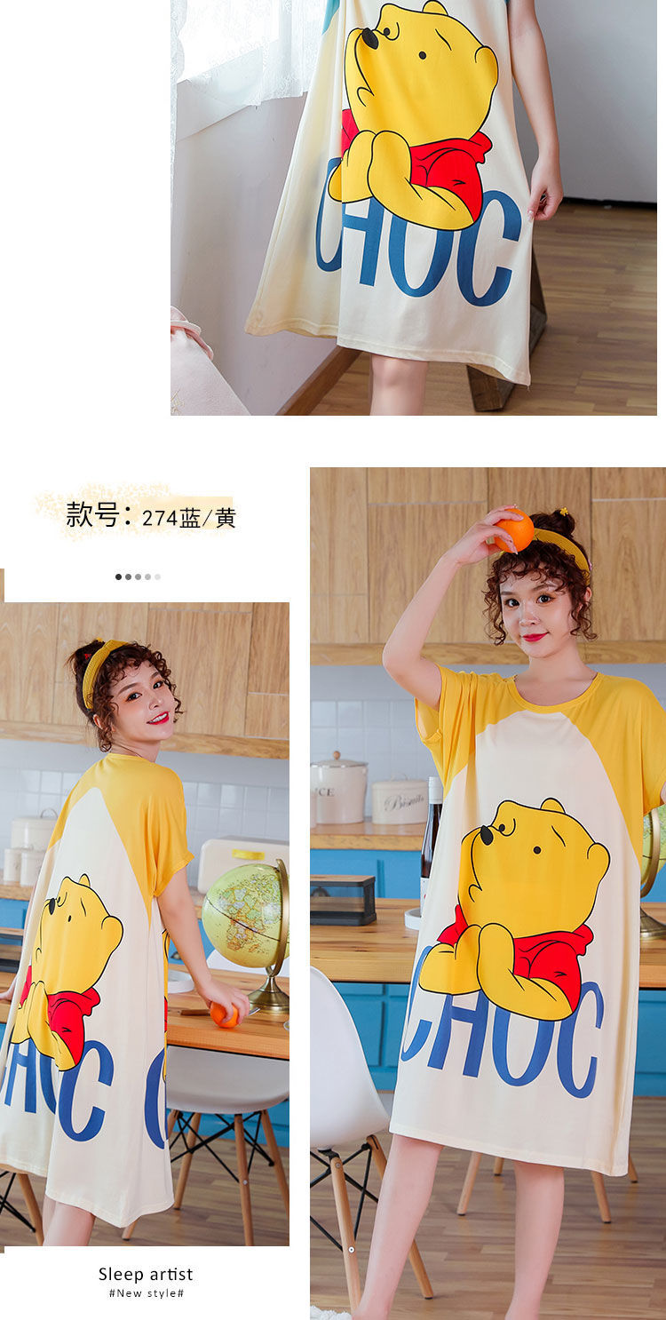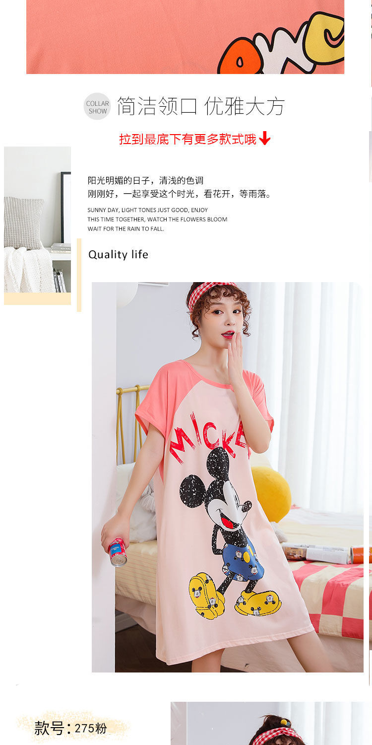 美乐丽影睡衣女夏宽松大码甜美可爱卡通短袖中长款孕妇可外穿睡裙