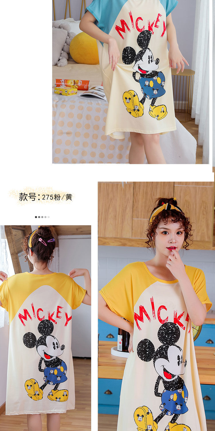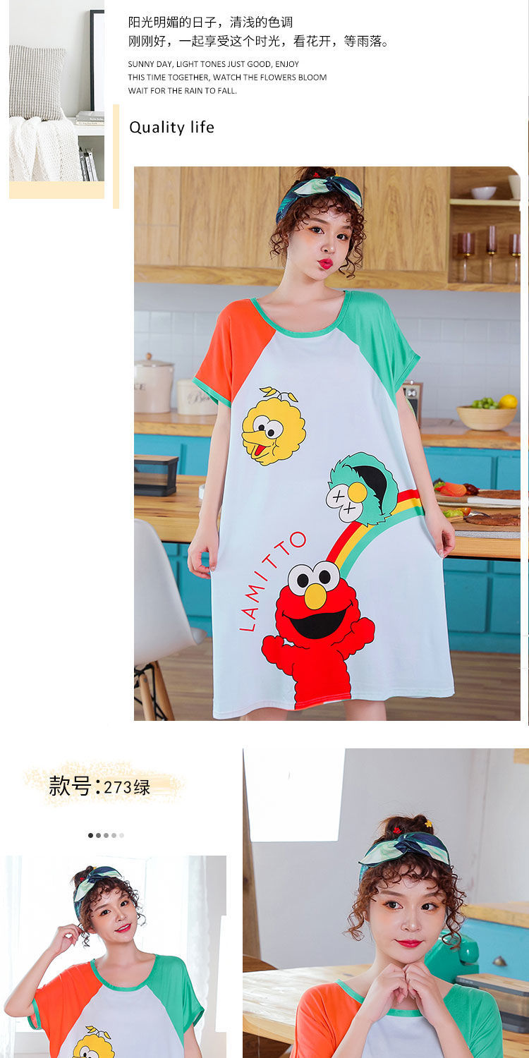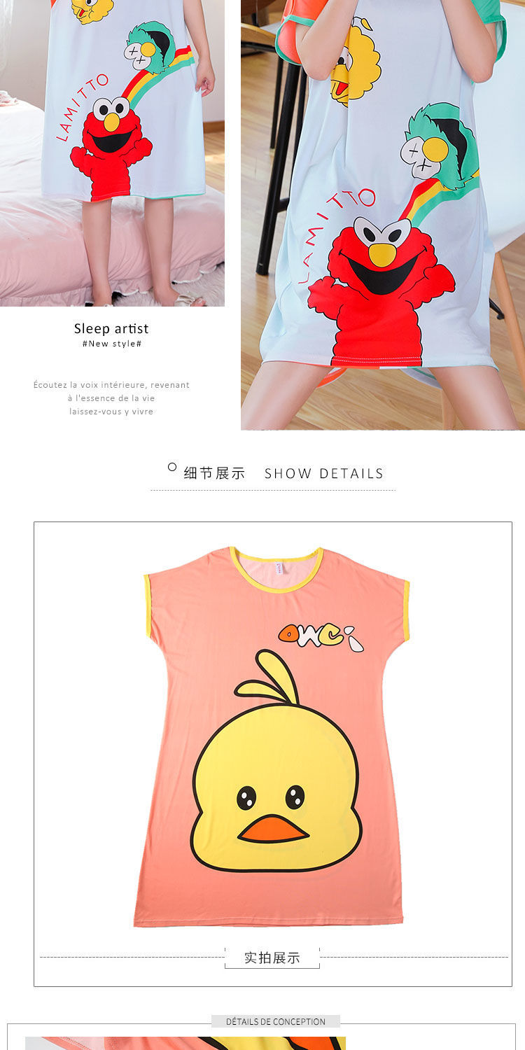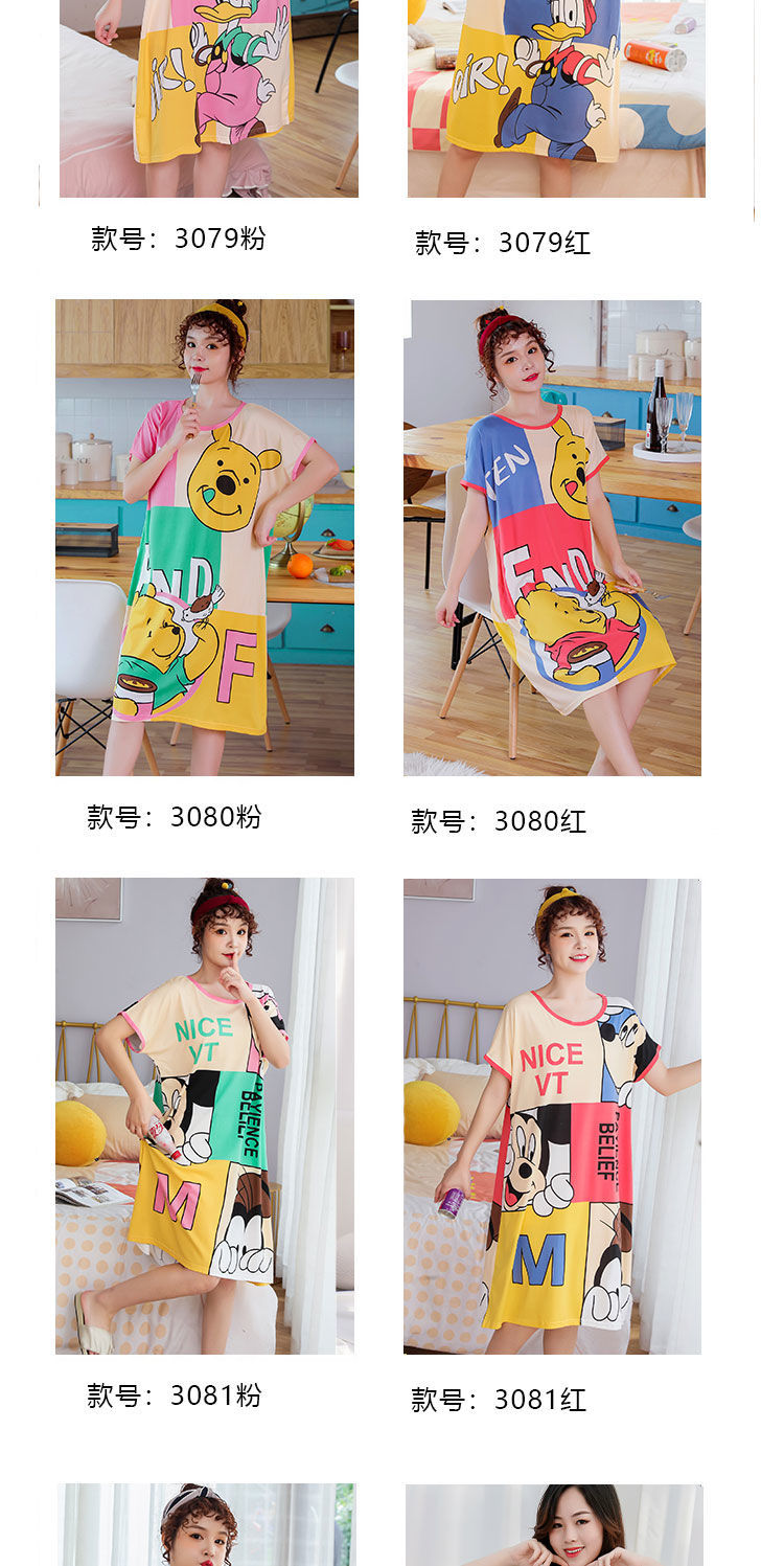 美乐丽影睡衣女夏宽松大码甜美可爱卡通短袖中长款孕妇可外穿睡裙