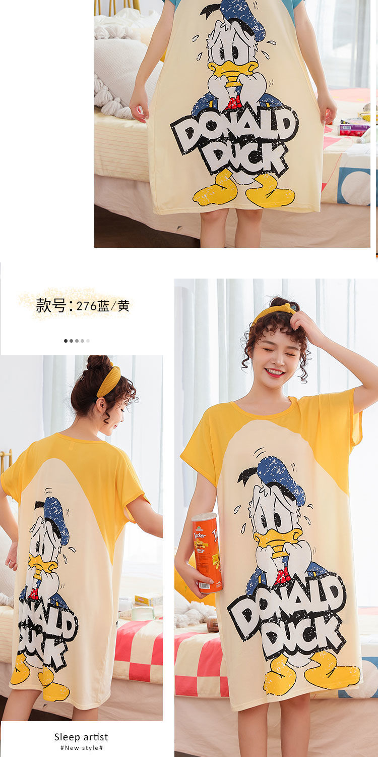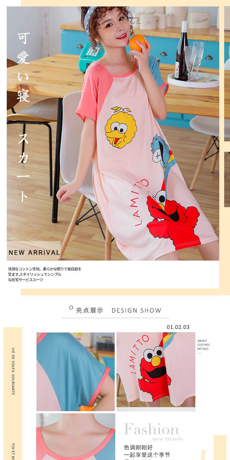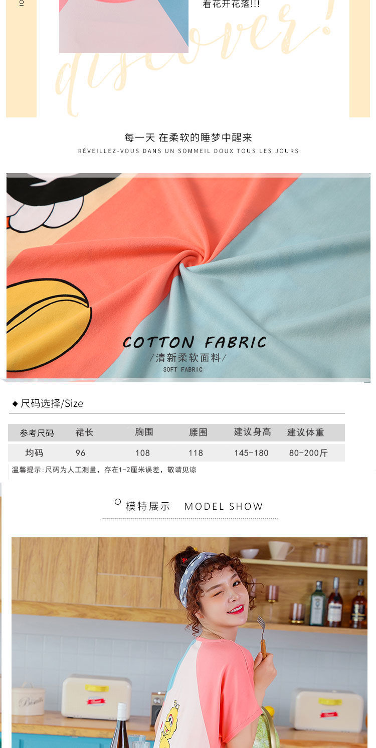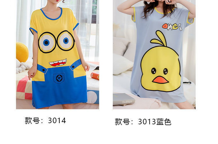 美乐丽影睡衣女夏宽松大码甜美可爱卡通短袖中长款孕妇可外穿睡裙