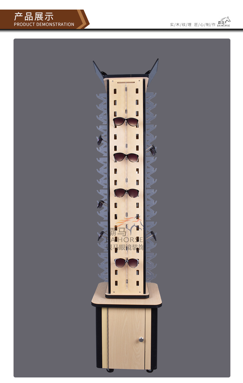 72付木质可陈列收纳移动太阳镜眼镜架道具展示架墨镜转盘展架展柜