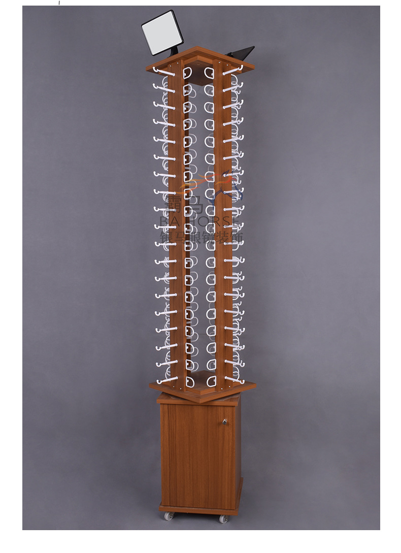 原创4面眼镜架太阳镜展示架落地式旋转移动木质墨镜货架展架展柜