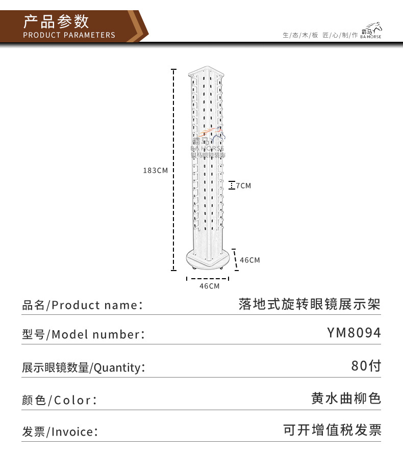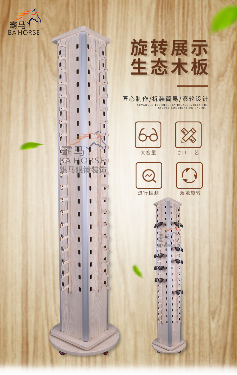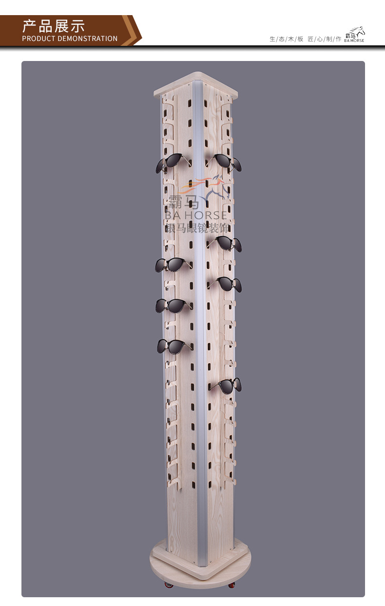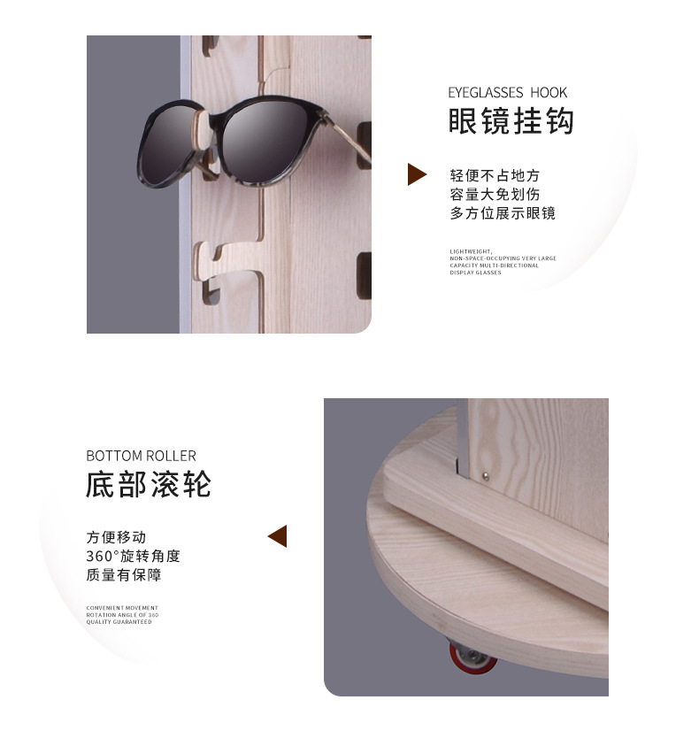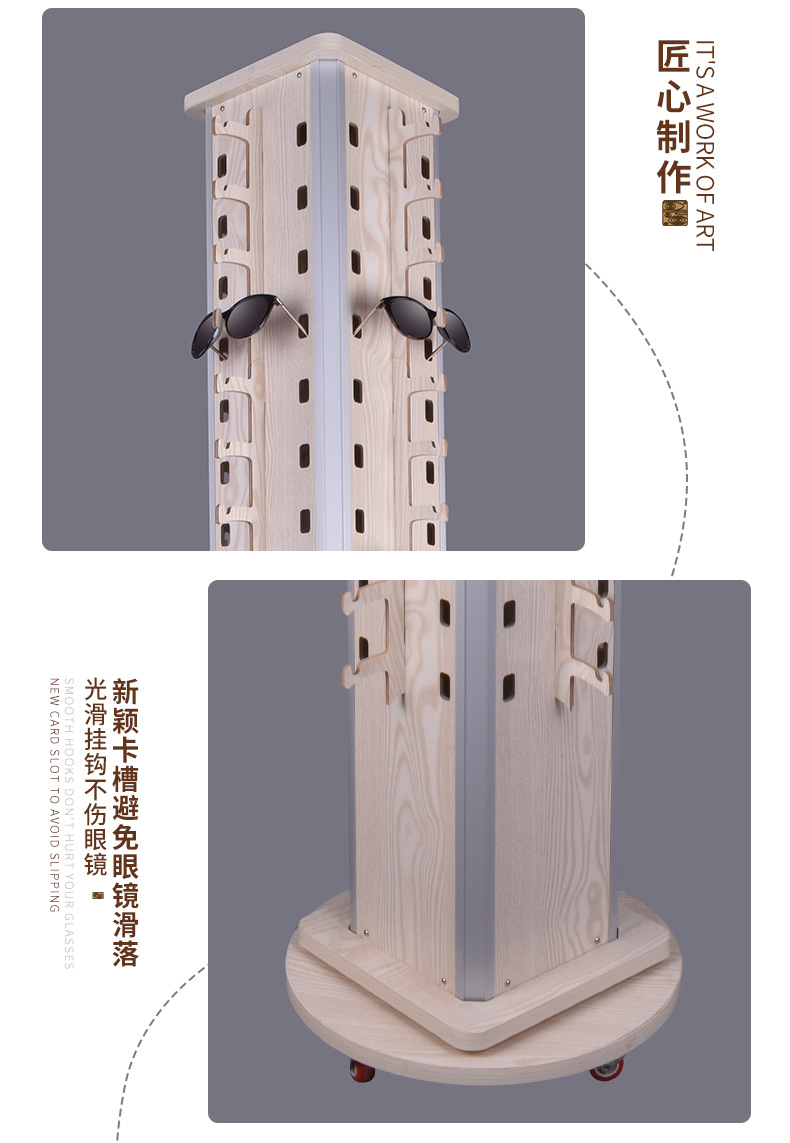4面木质可旋转眼镜太阳镜展架时尚落地移动墨镜转盘展示架子货架