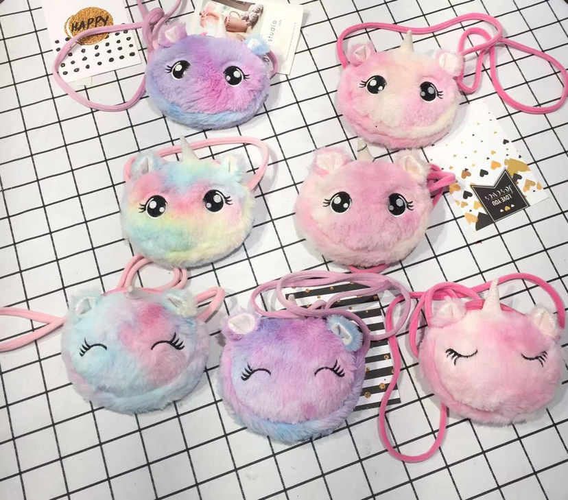 斜挎包毛绒包包彩色独角兽儿童斜挎包