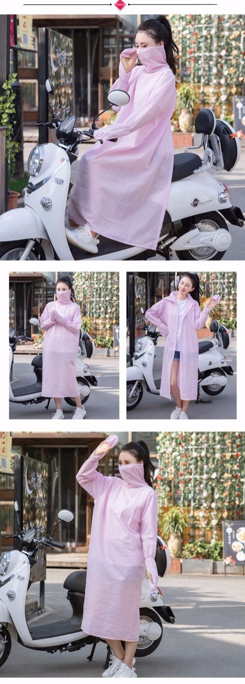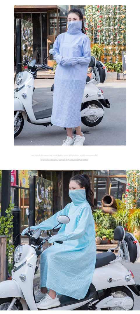 棉质遮面电动车防晒衣女 夏季开车全身摩托电车格子防晒服薄外套