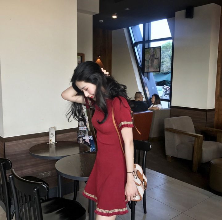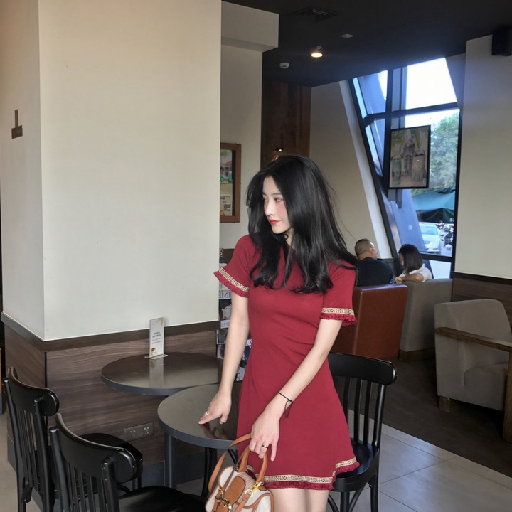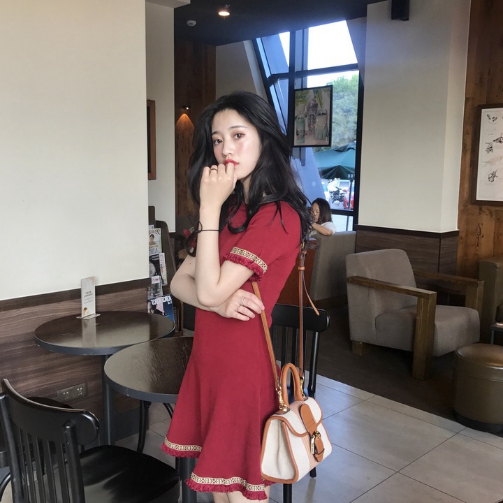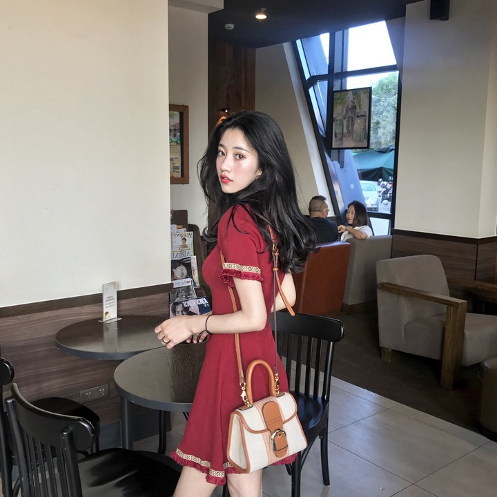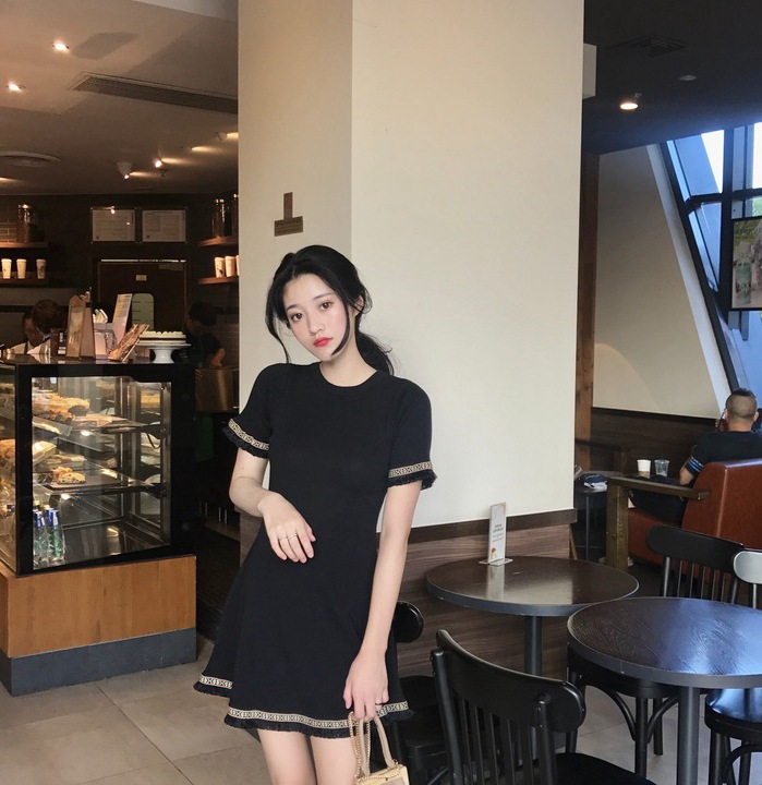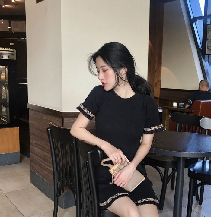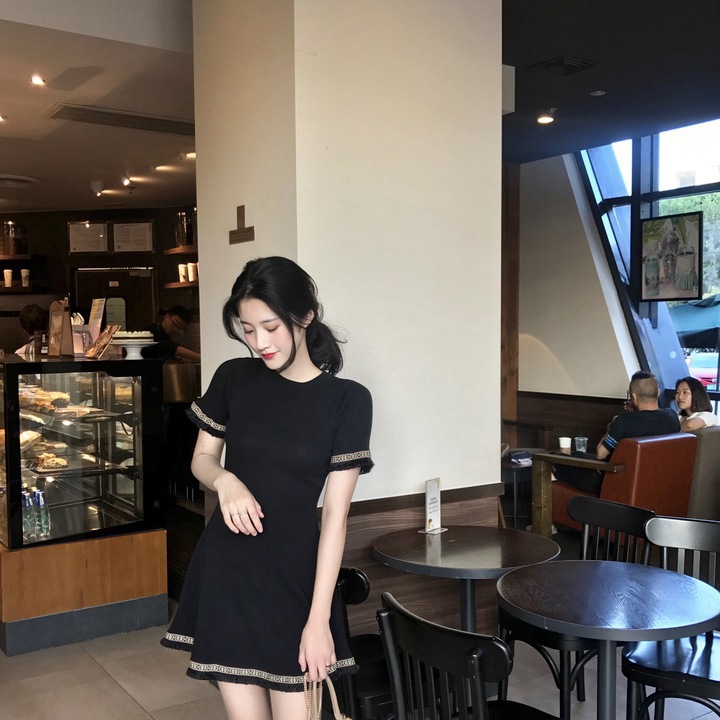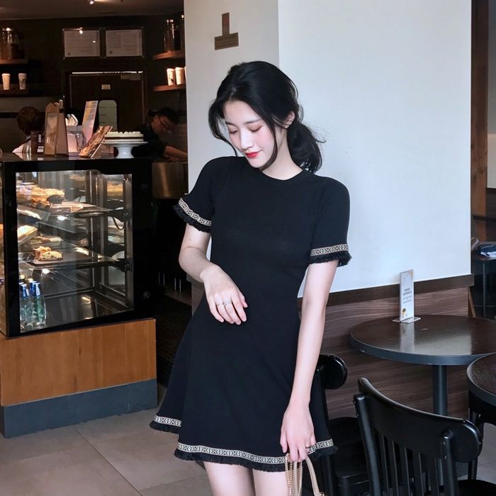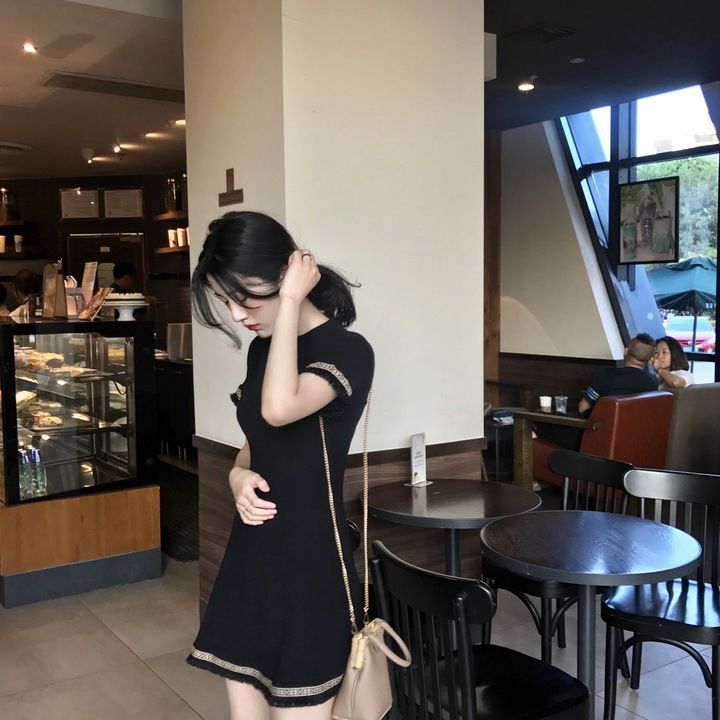 小个子新款韩版女装小香风气质连衣裙短袖chic修身a字裙子潮