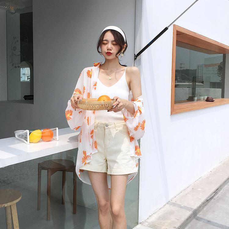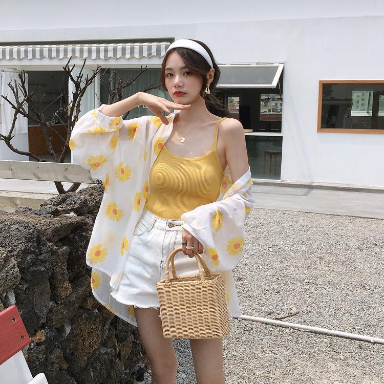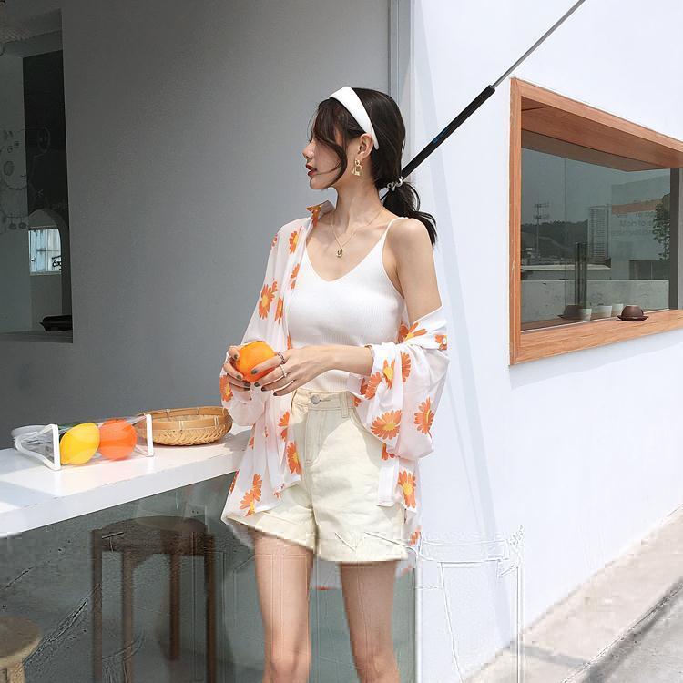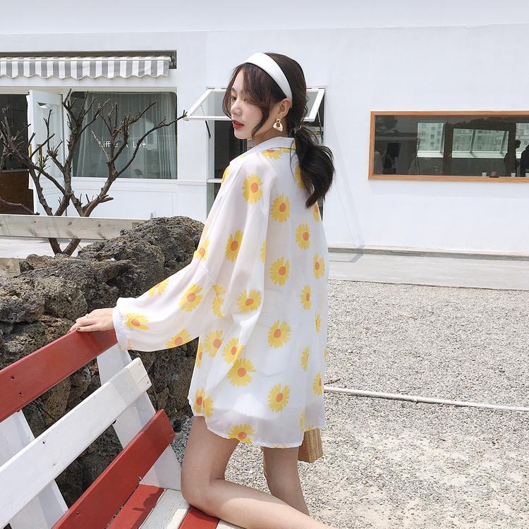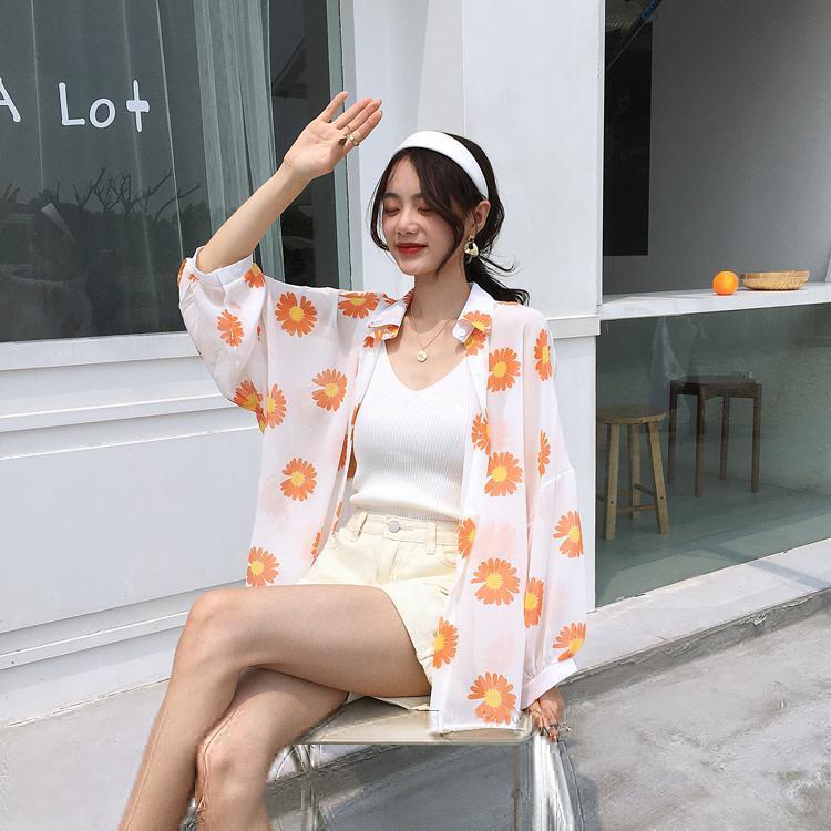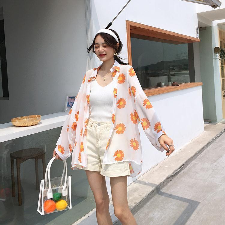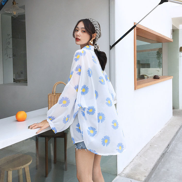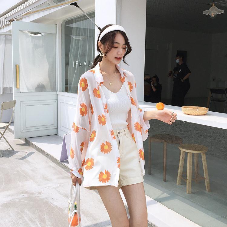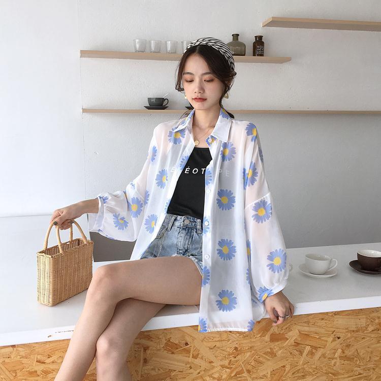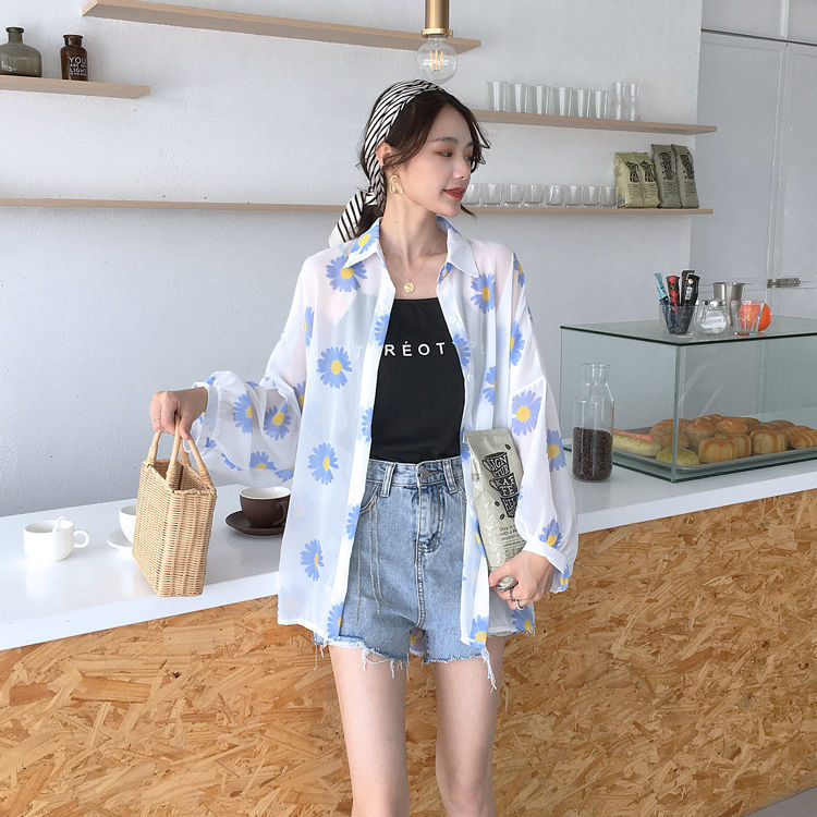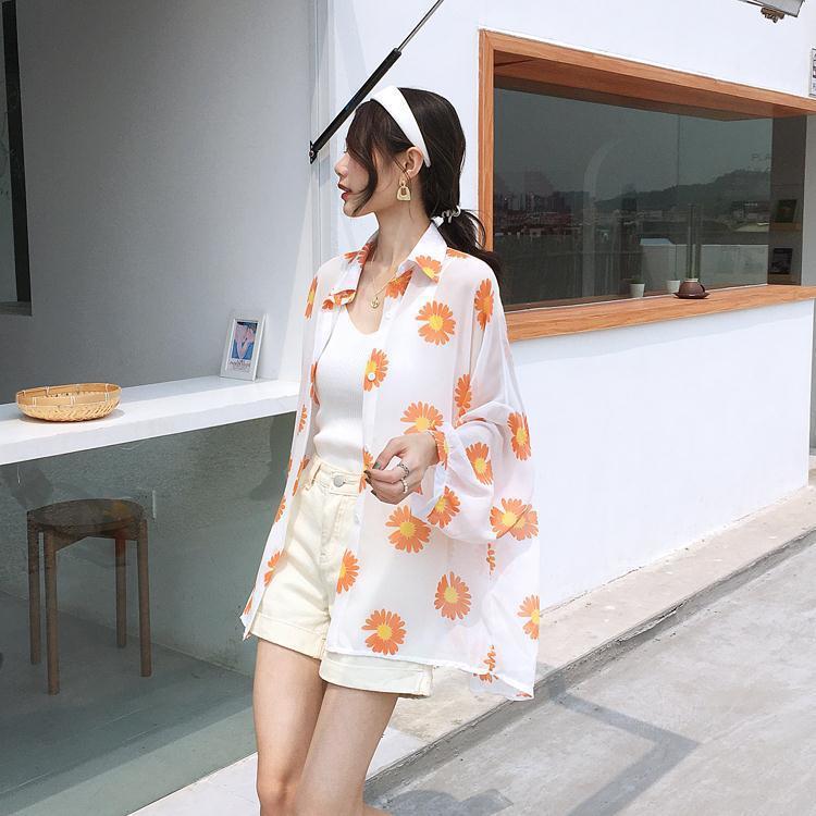 防晒衣女中长款雪纺衬衫女学生韩版宽松设计感衬衣外穿长袖防晒衫