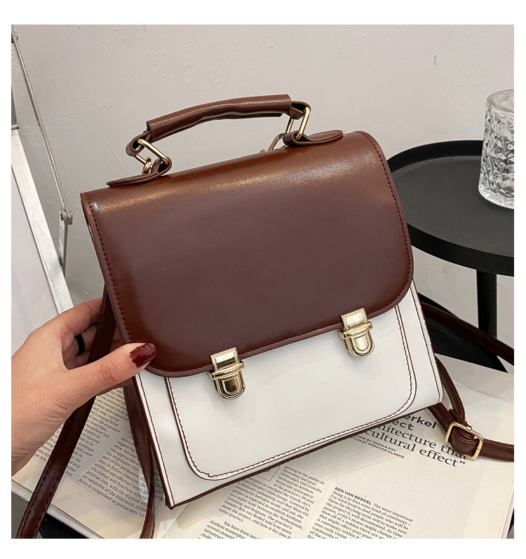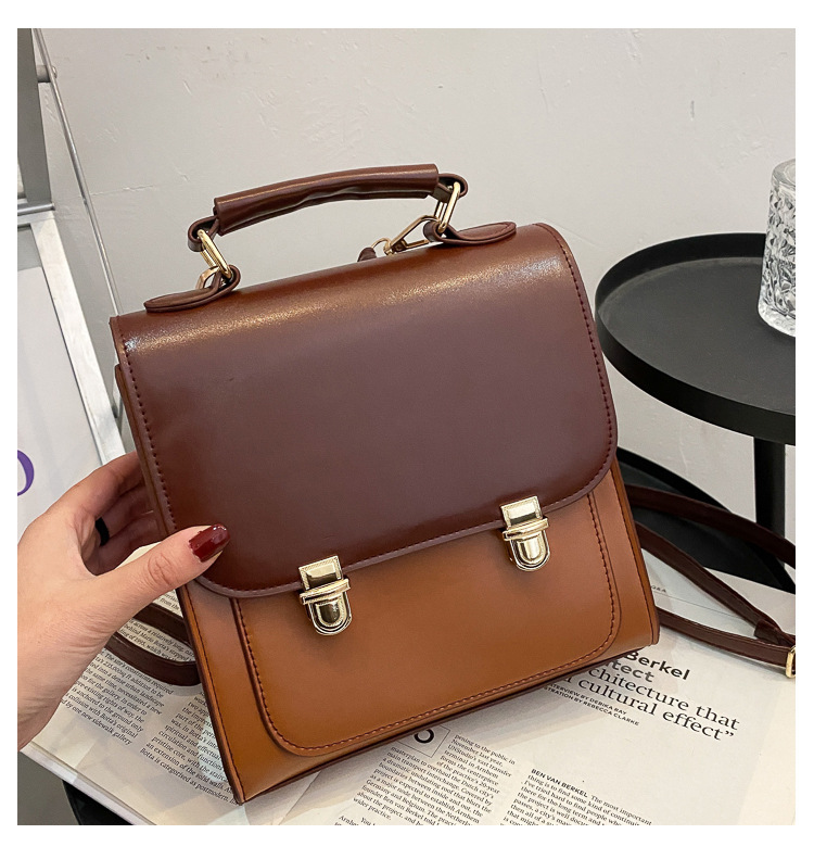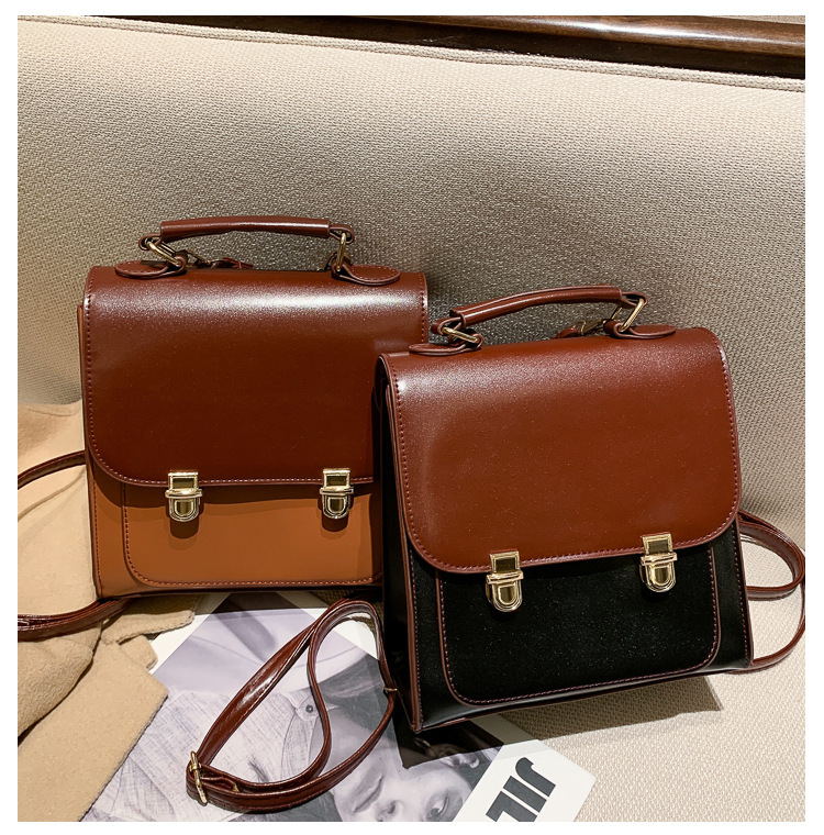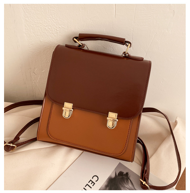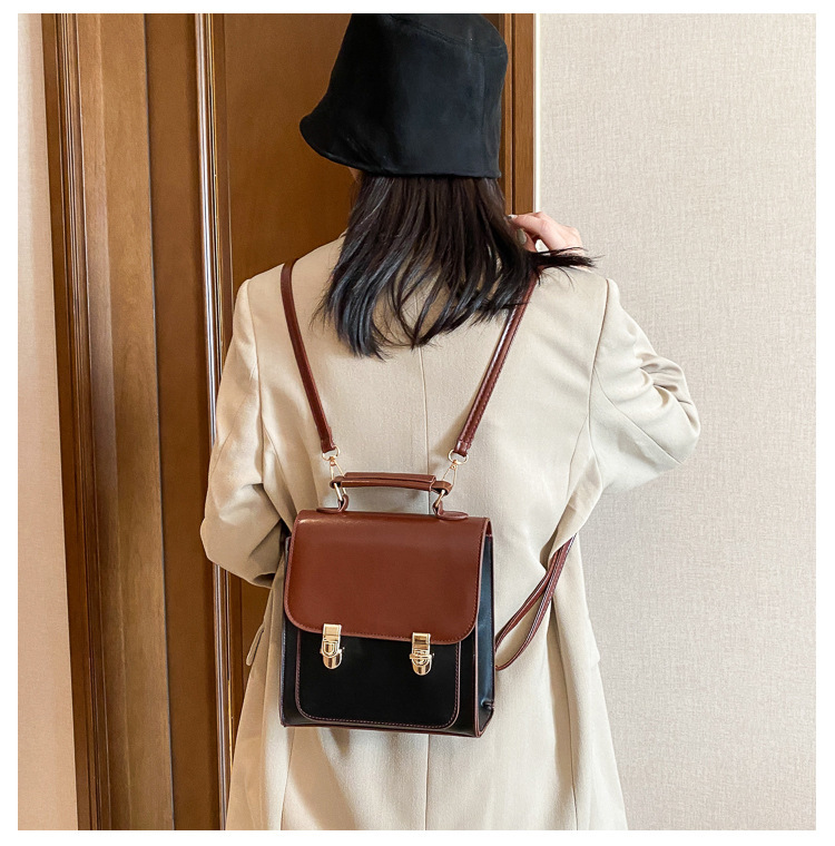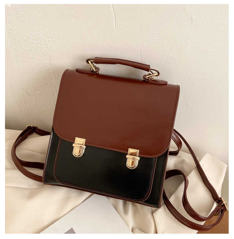 日系质感撞色双肩包女2025新款韩国学院风斜挎小书包多用复古小包