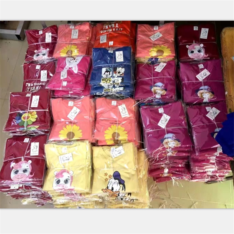 【发货】多颜色多图案随机混搭,大小码--齐码出货,一个颜色三个码,一个图案三个码,会尽量多配颜色图案的哦。2--6岁可穿(仅供参考)我们批发的颜色图案都很多很多的,都是做好一批了,然后放去印花的时候就保留上一批的一半印花,然后又增加一些印花的,所以印花每一批都不一定相同的,重复拿货也不会丢失客源的哦!