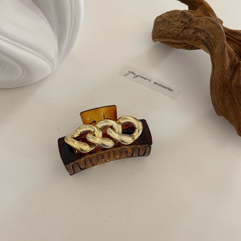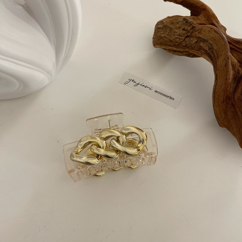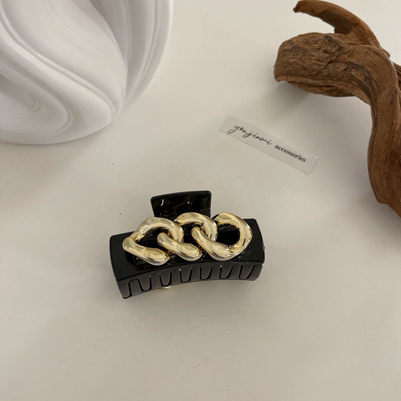 ins复古珍珠几何抓夹百搭金属链条发抓韩国少女后脑勺夹子发饰品