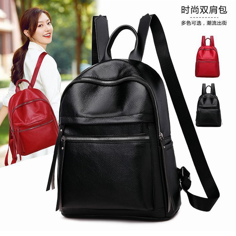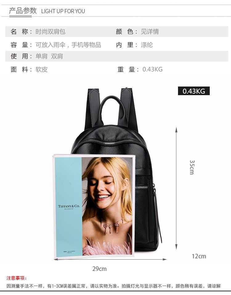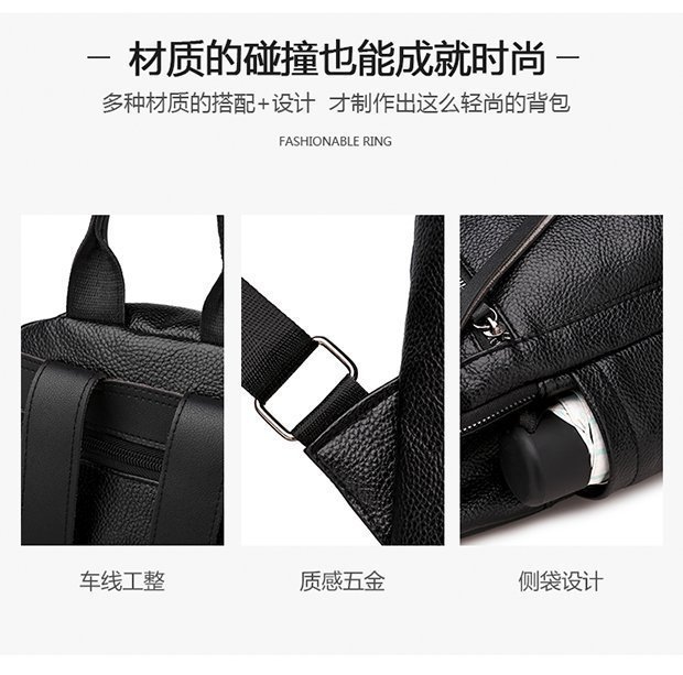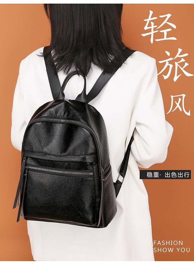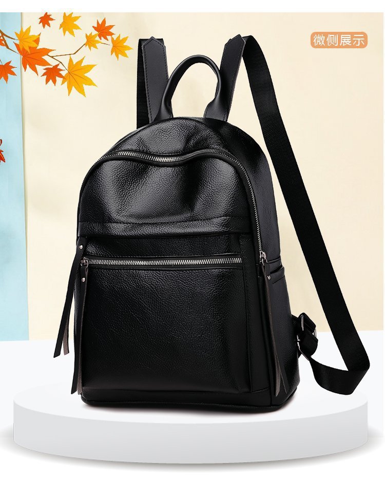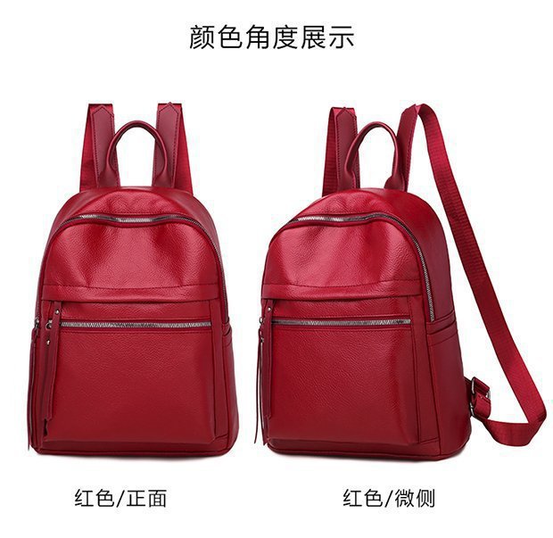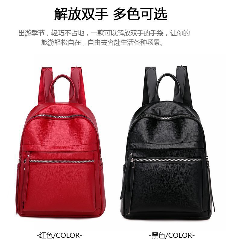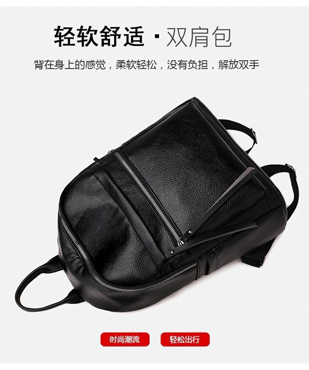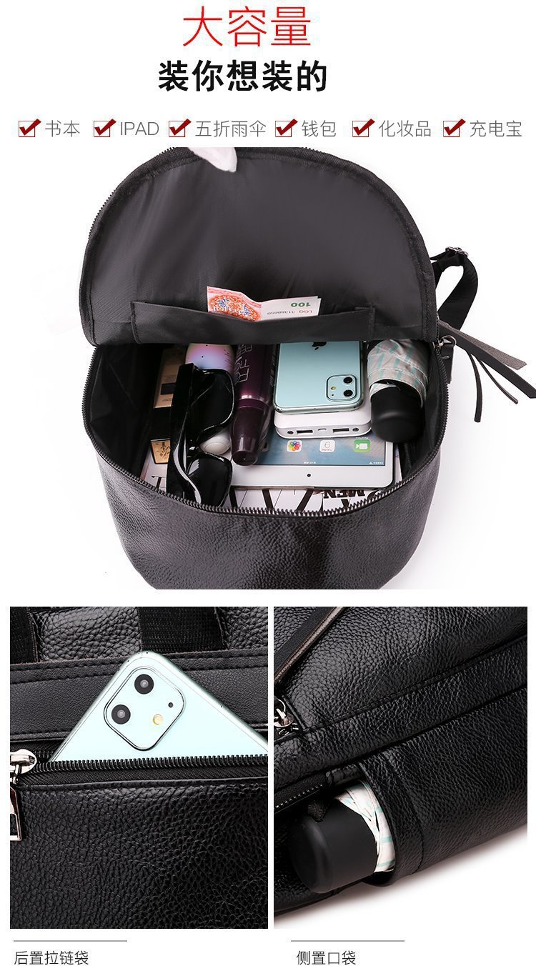 女士双肩包双背肩包防盗全书包软布料牛真皮女土后背包