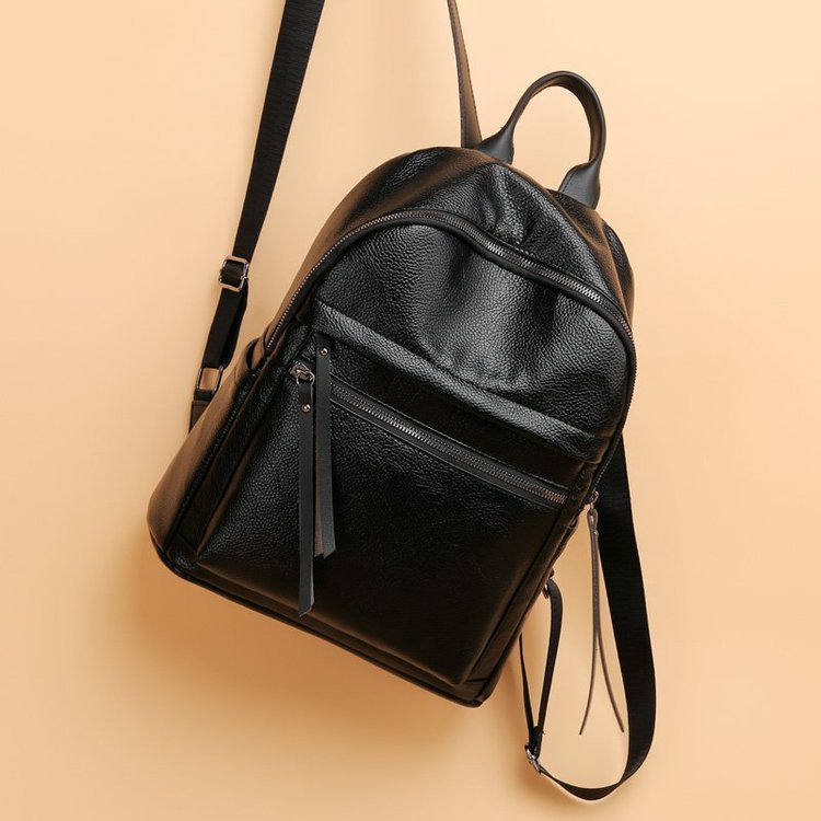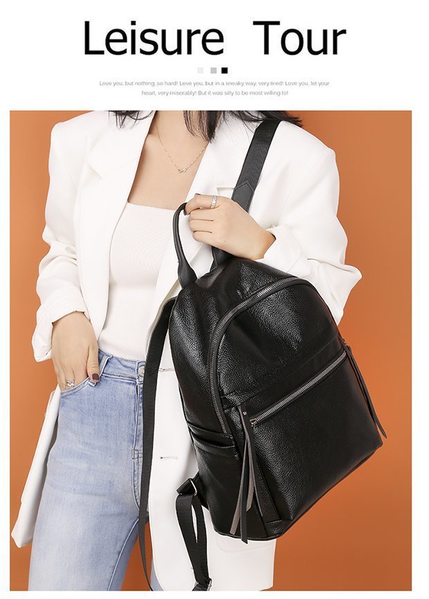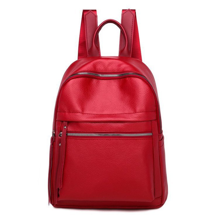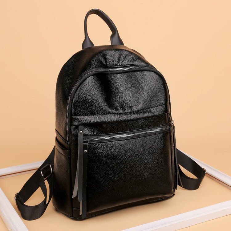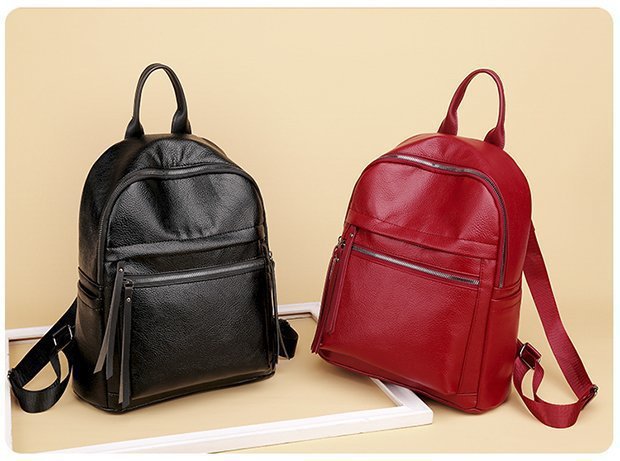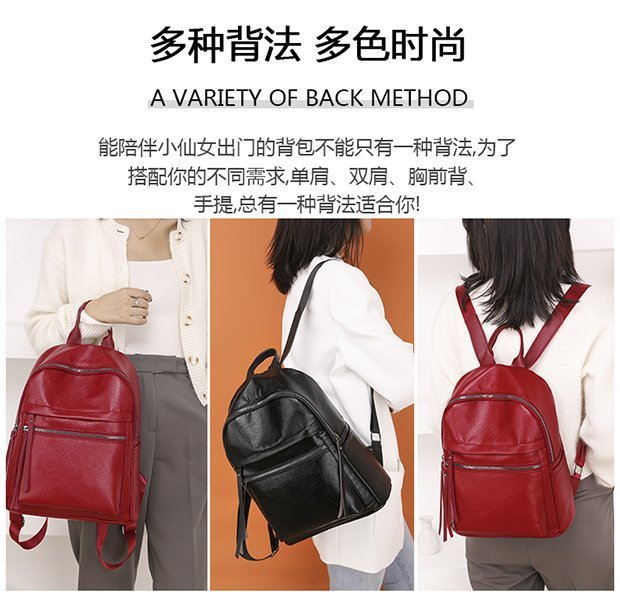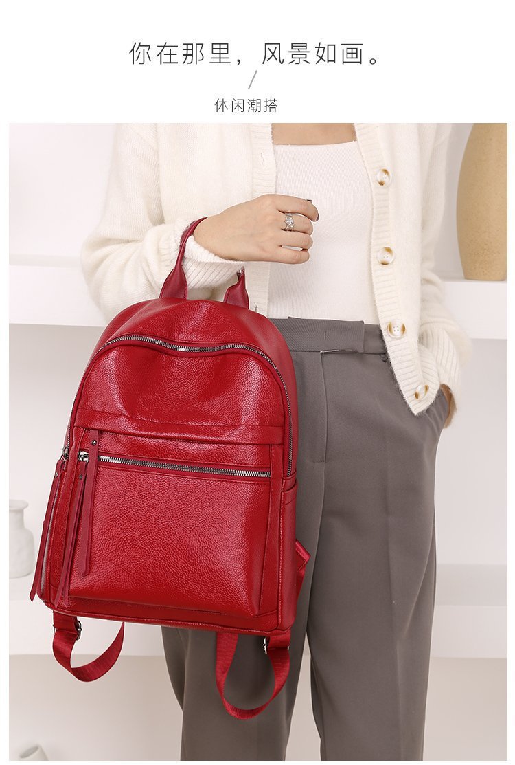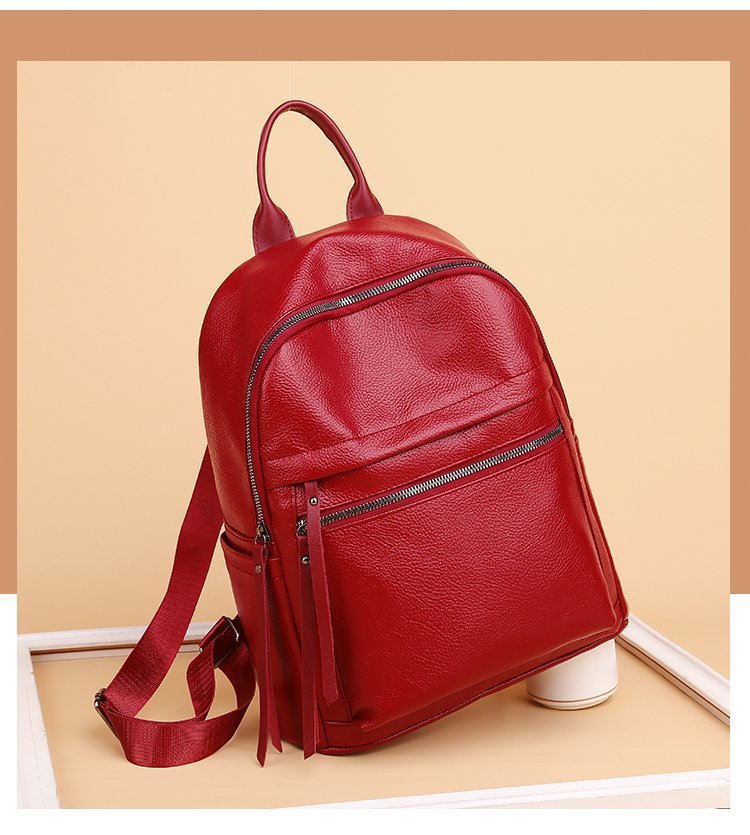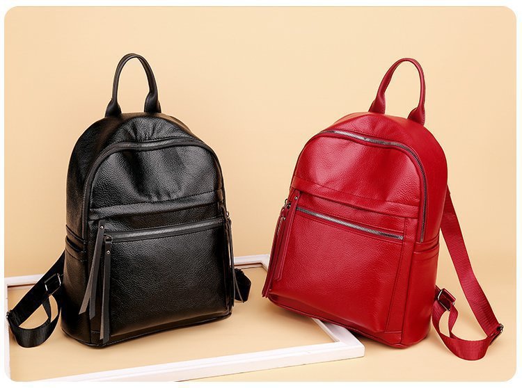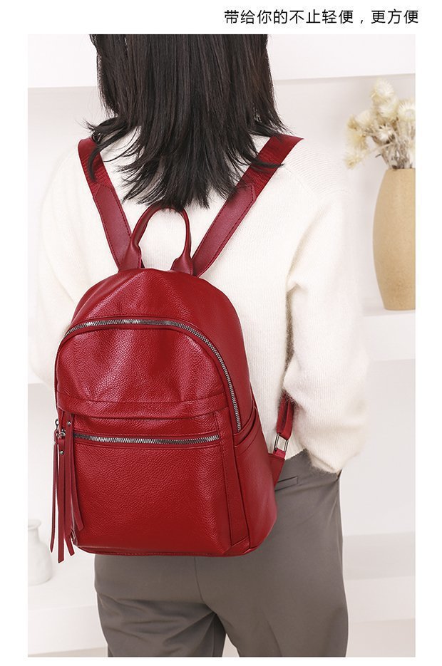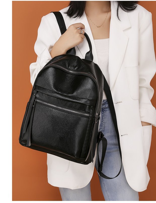女士双肩包双背肩包防盗全书包软布料牛真皮女土后背包