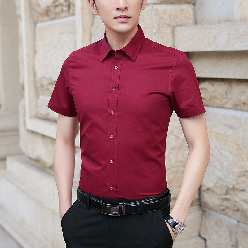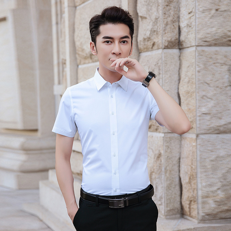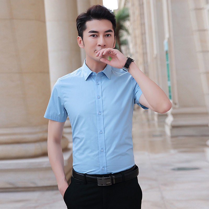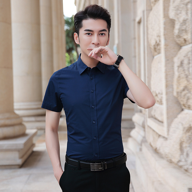衬衫男短袖男装韩版修身商务休闲免烫职业装青年纯色衬衣