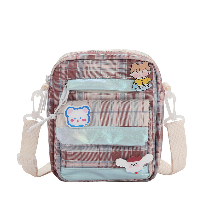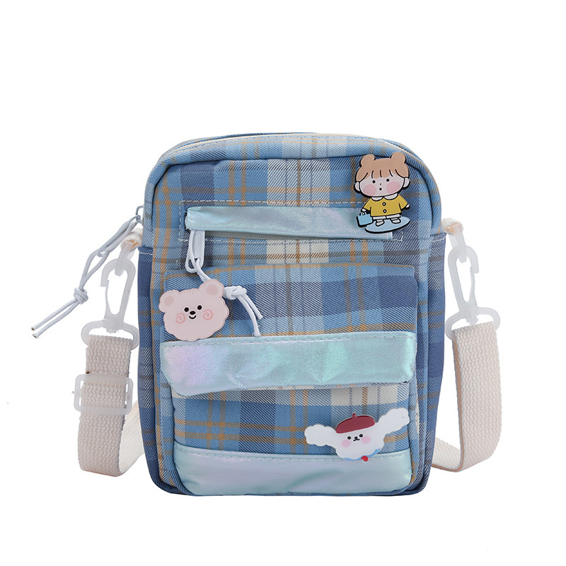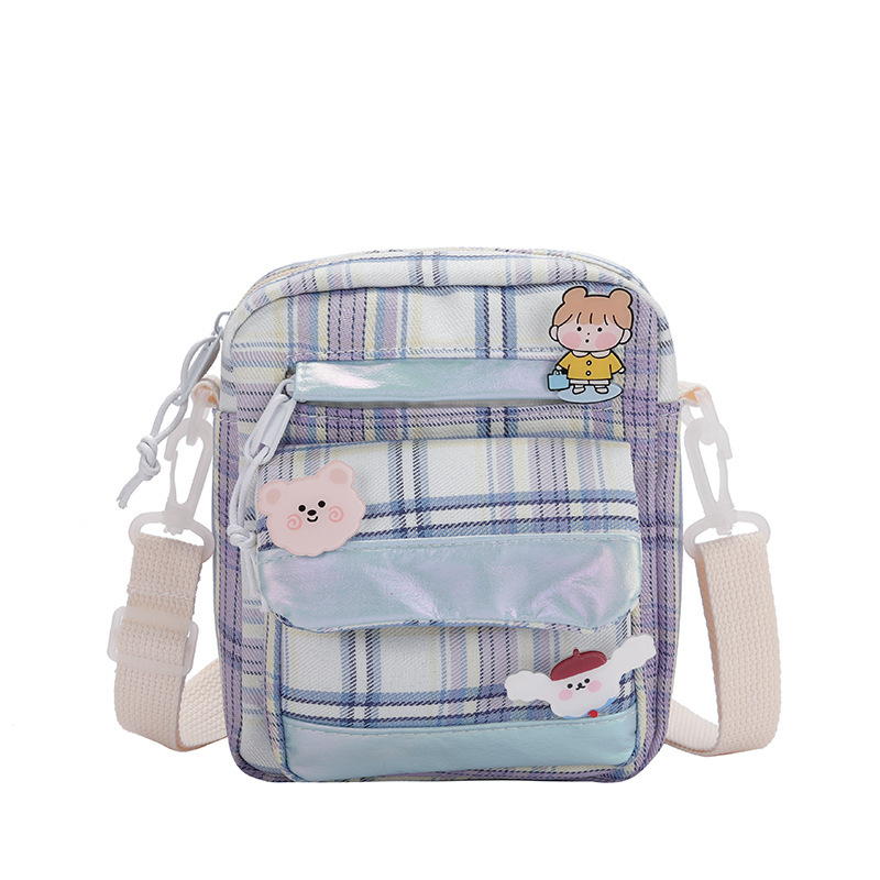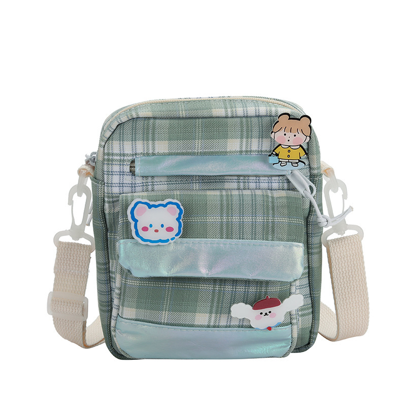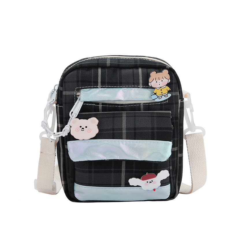 外贸清新可爱尼龙斜挎包时尚简约格纹小方包甜美包包